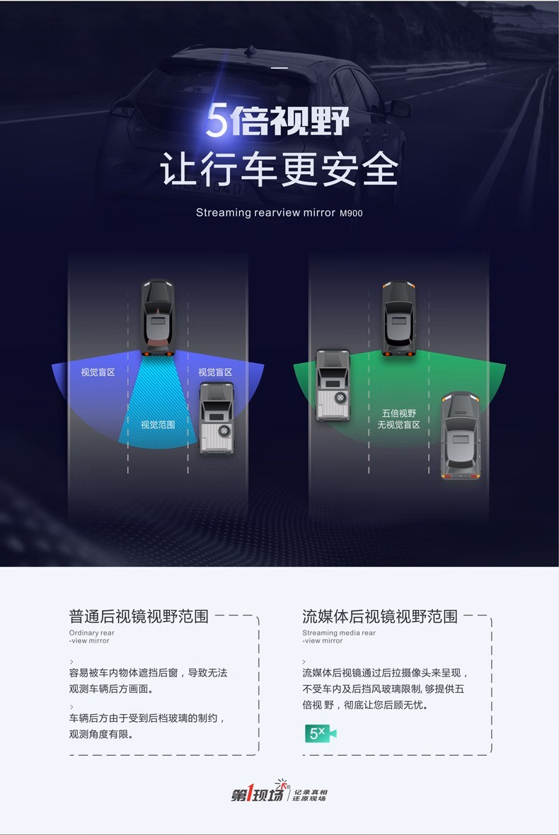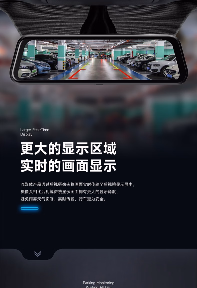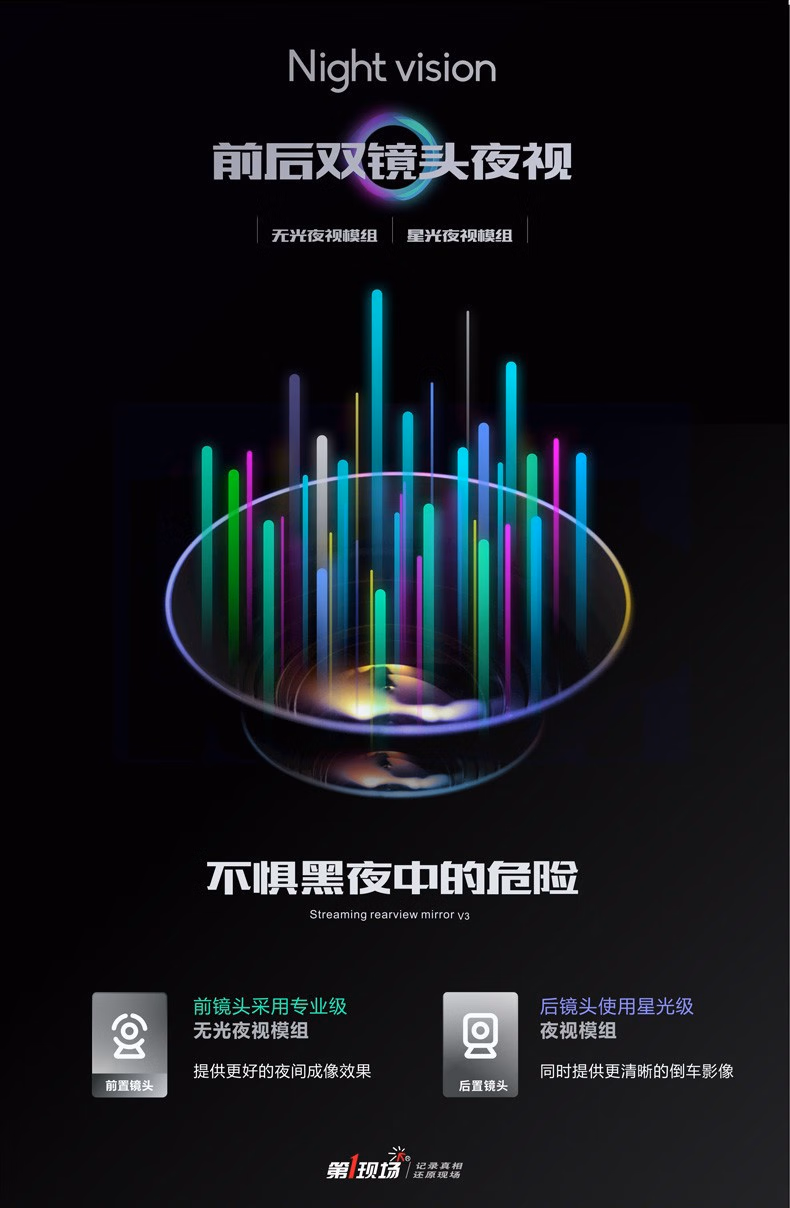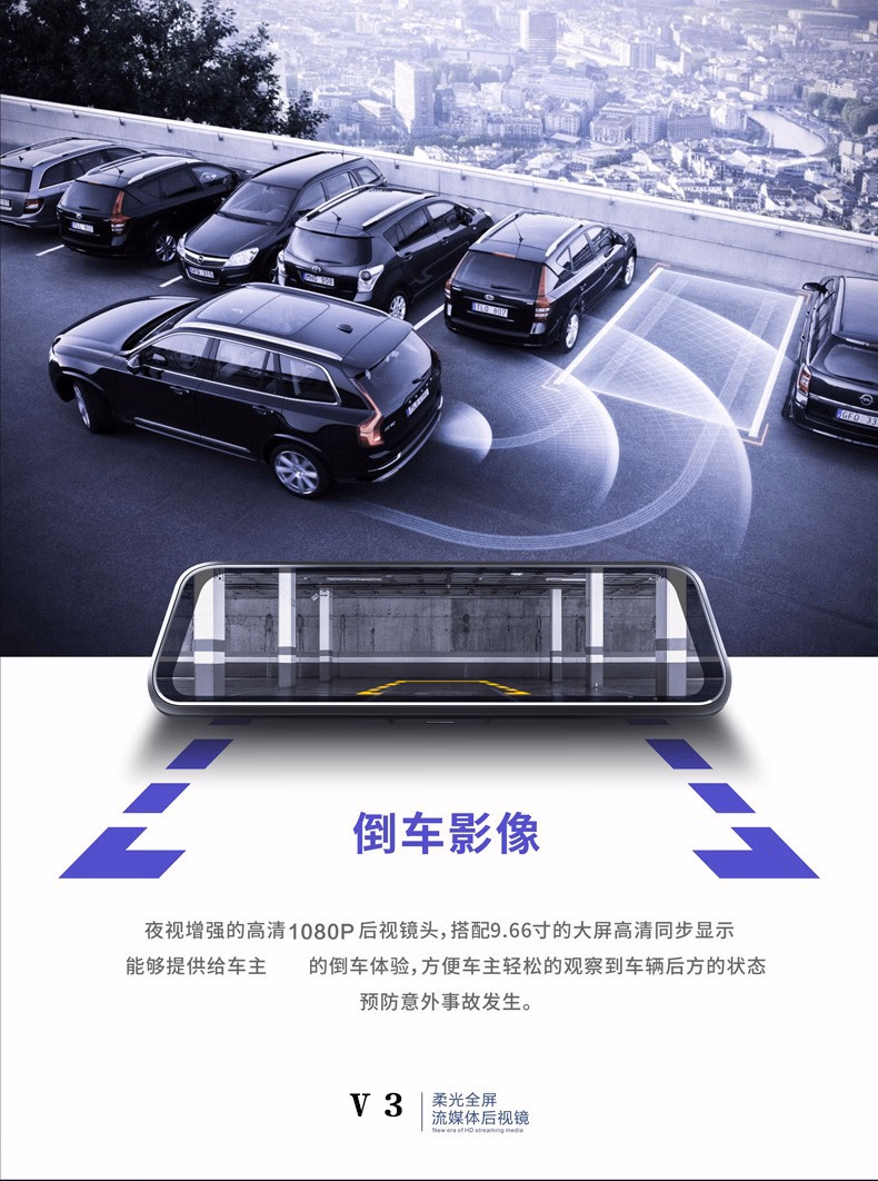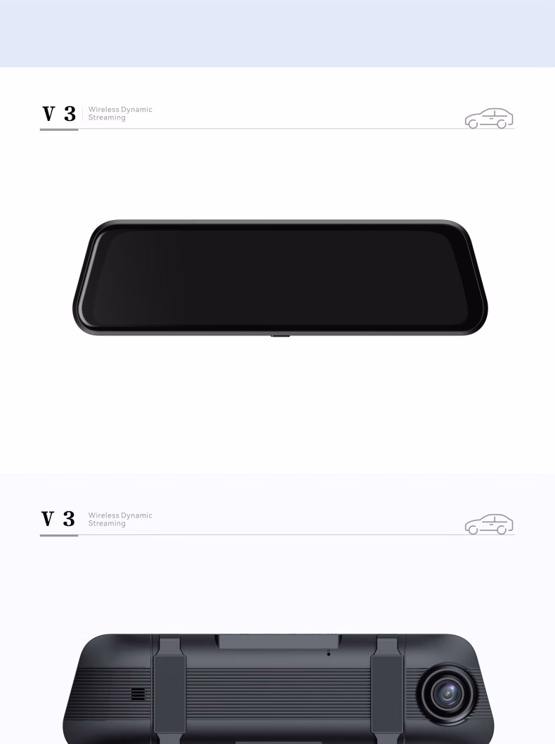 第一现场V3MAX流媒体后视镜行车记录仪声控功能10英寸高清24小时停车监控自动循环录影无光夜视 黑色+64G内存卡