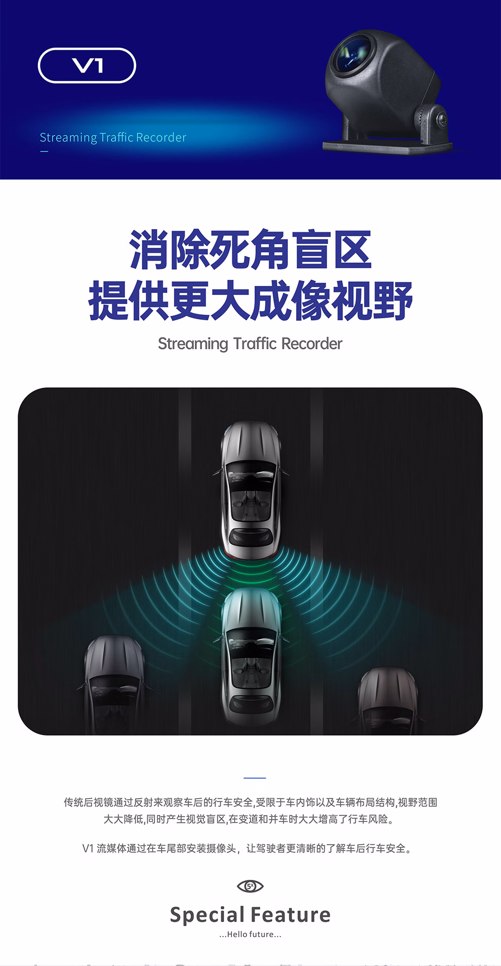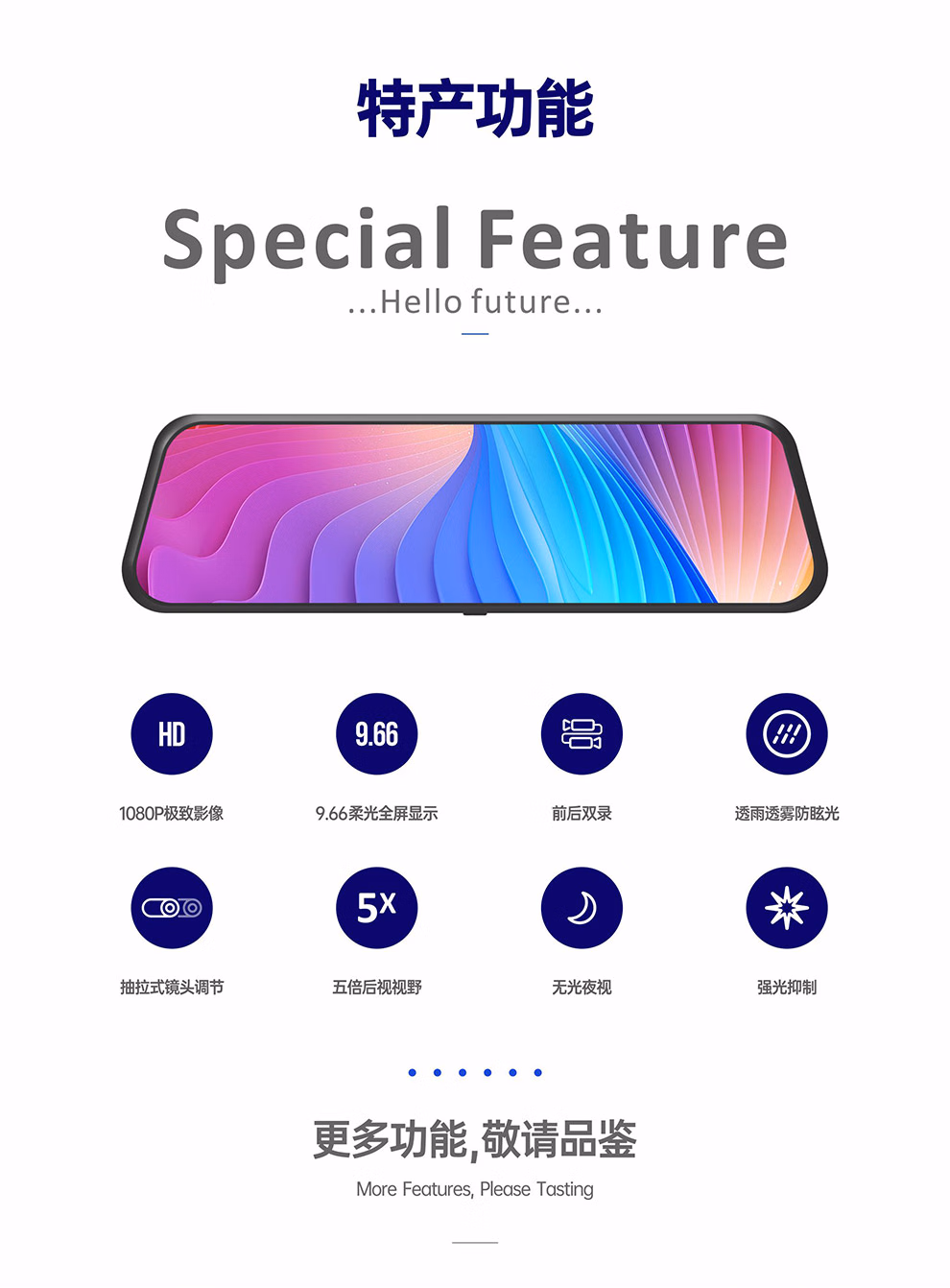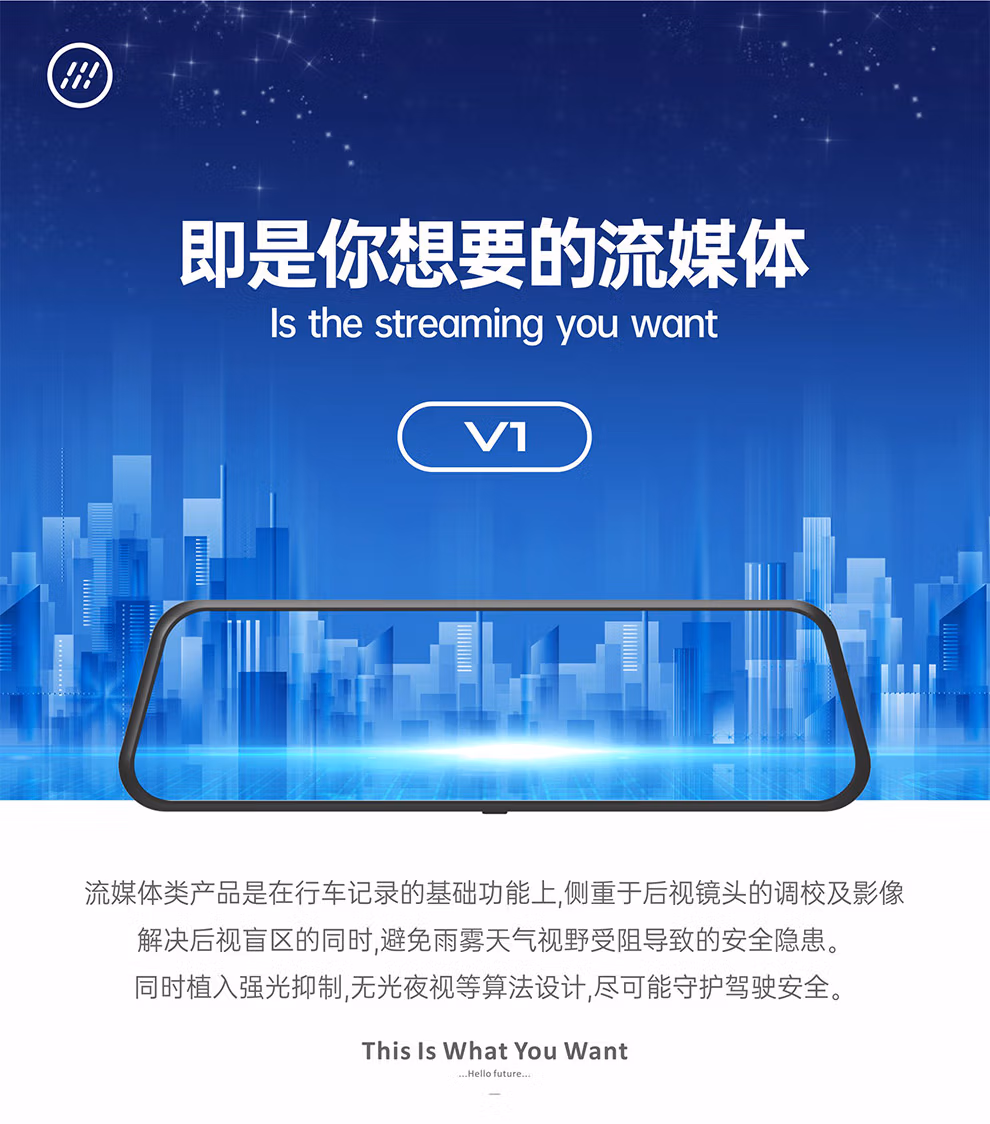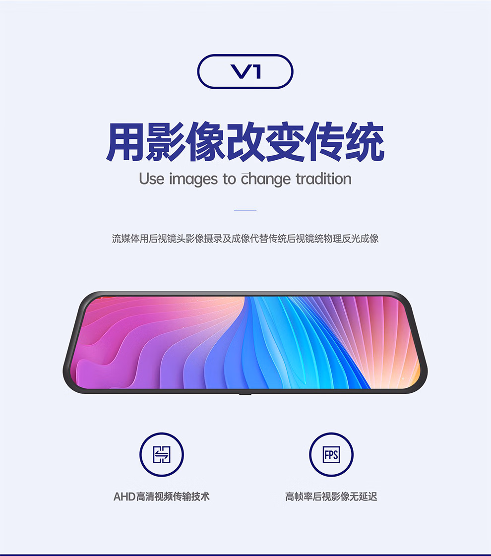 第1现场V1流媒体行车记录仪后9.66英寸触摸全面屏前后双录自动循环录影倒车影像24小时停车监控 官方标配+64G内存卡