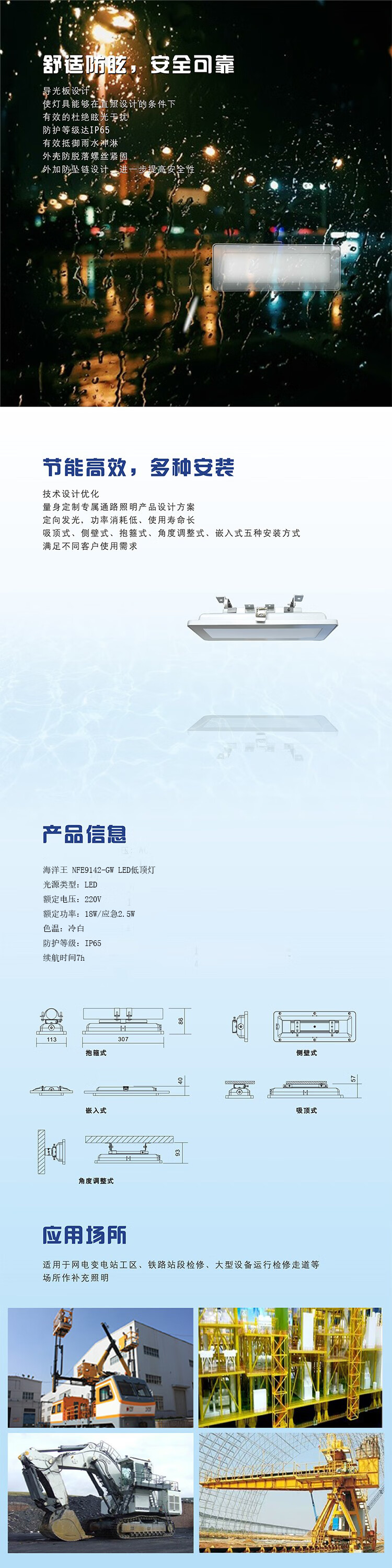 海洋王 NFE9142-GW 额定18W/应急2.5W IP65 续航时间7h 220V 冷白 LED LED低顶灯 (计价单位:个) 银色