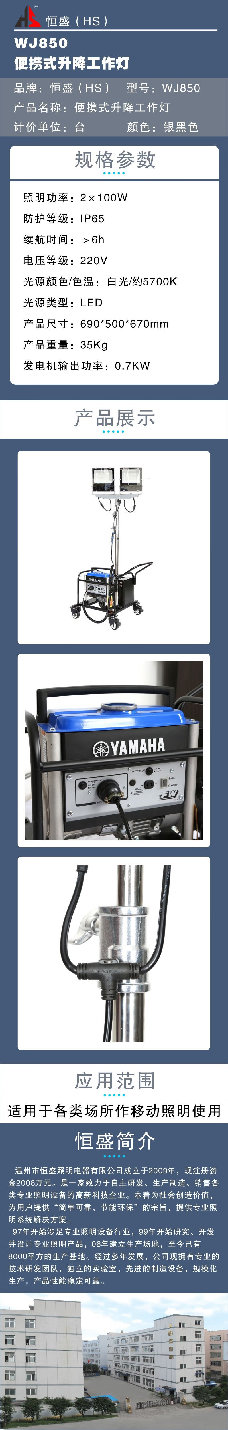 • 商品名称:恒盛(HS) WJ850 便携式升降工作灯 (计价单位:台) 银黑色