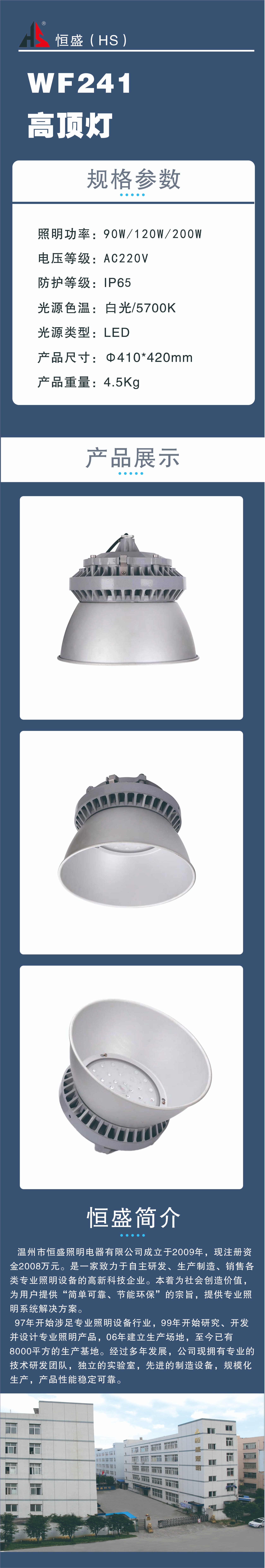 恒盛(HS) WF241-200W 200W IP65 电压等级:AC220V 白光/约5700K LED LED高顶灯 (计价单位:个) 灰色