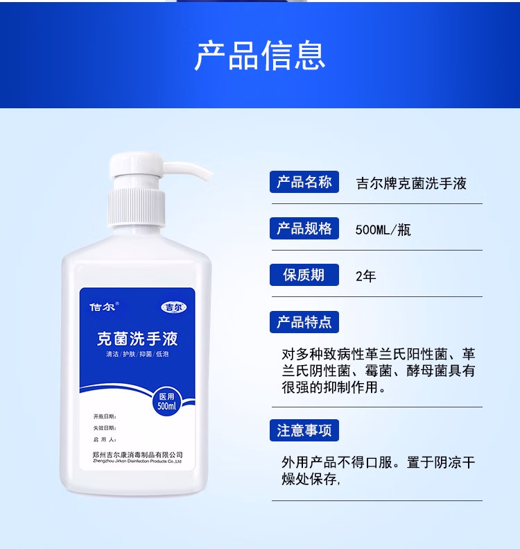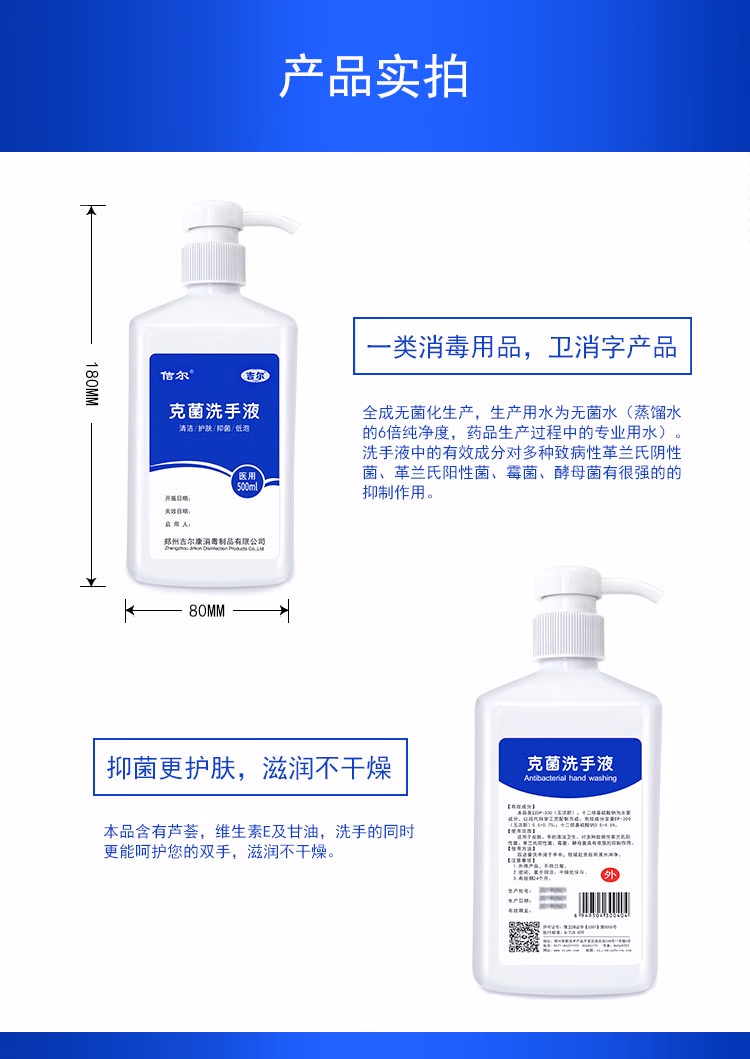 • 商品名称:佶尔牌吉尔克菌洗手液500ml清洁护肤抑菌低泡