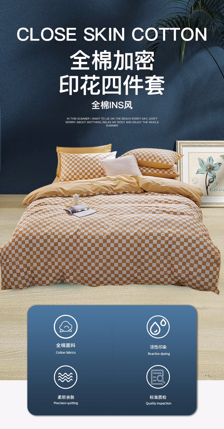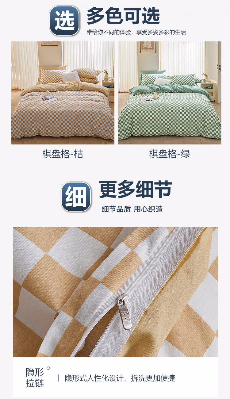 • 商品名称:伊伊爱时尚纯棉床上用品四件套 棋盘格系列 棋盘格-桔 200*230cm/TJ0NH02201499
