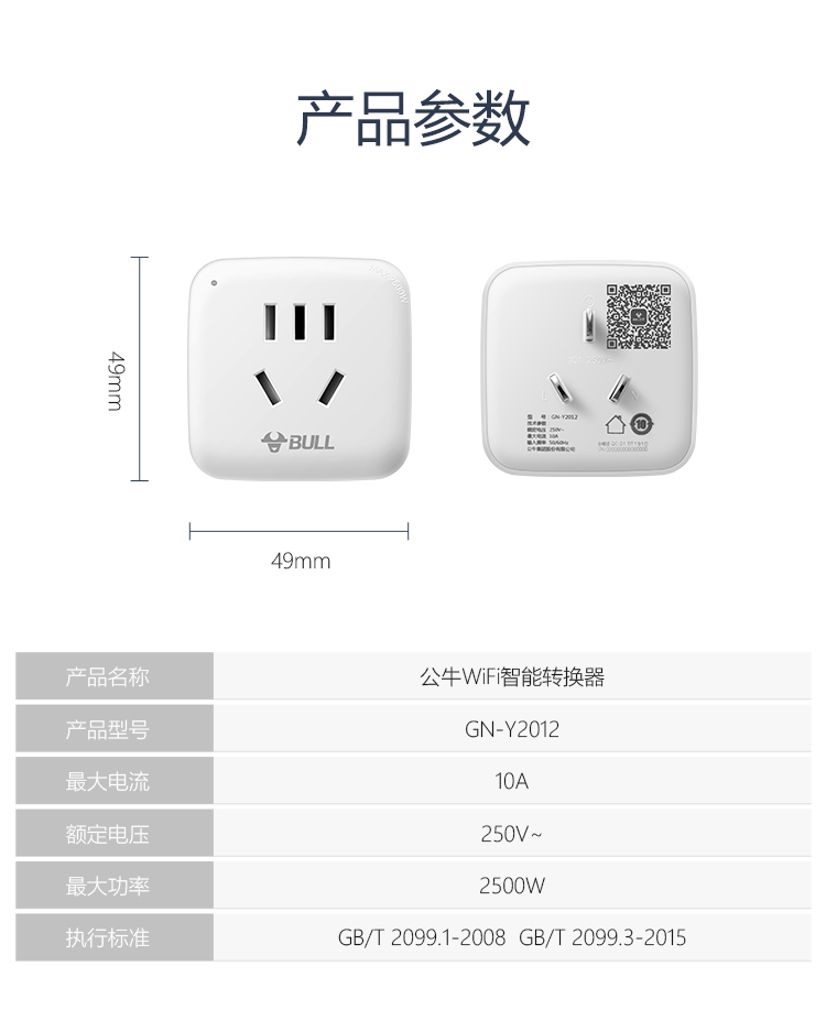 公牛(BULL) WIFI智能插座 公牛智家APP智能生态产品独立控制 带定时功能GN-Y2012