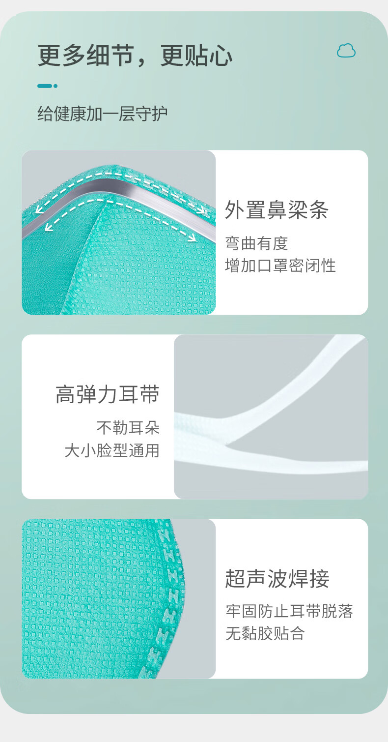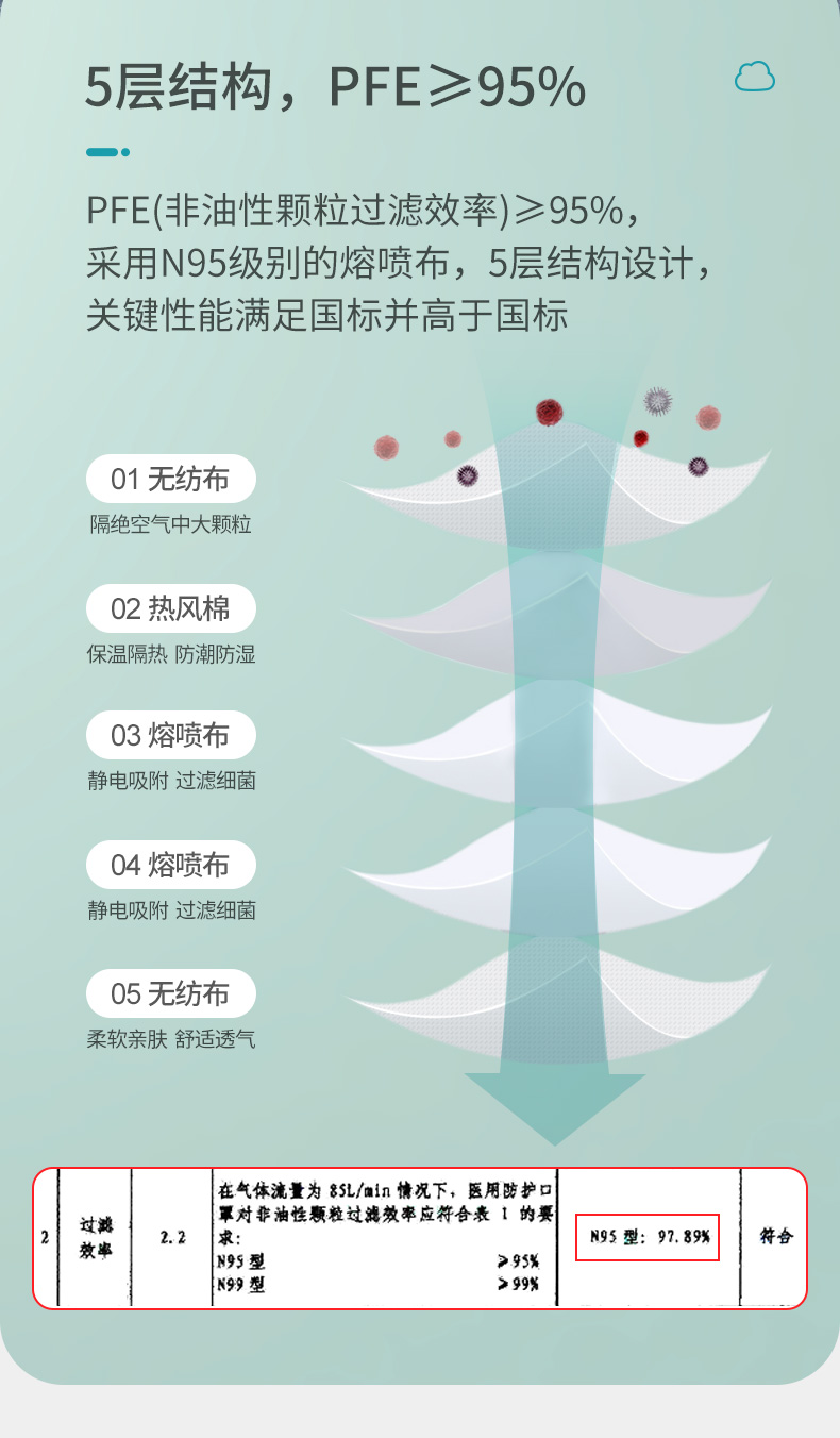 稳健(Winner)WN-N95口罩防护口罩 灭菌级五层防护3D立体头戴式 绿色款独立装7袋