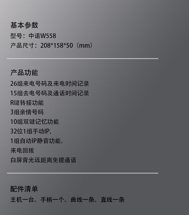 中诺(CHINO-E) W558(黑色) 电话机 (计价单位:台) 黑色