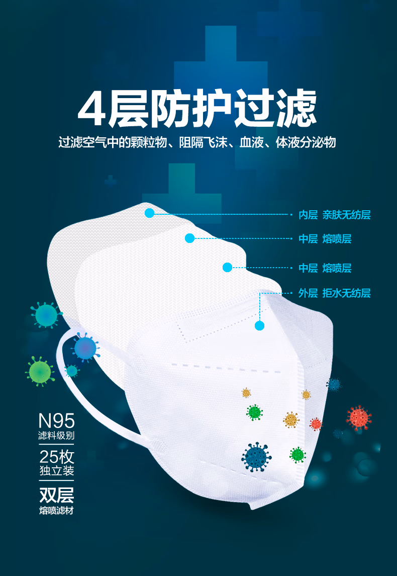 中体倍力N95防护口罩一次性无菌独立包装 Y7-25-防护口罩-白色-新-耳戴