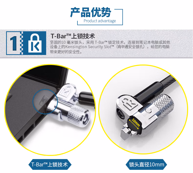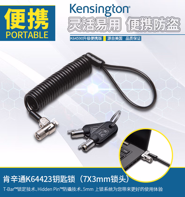 肯辛通(Kensington) K64423 便携式 电脑锁 (计价单位:个) 黑色