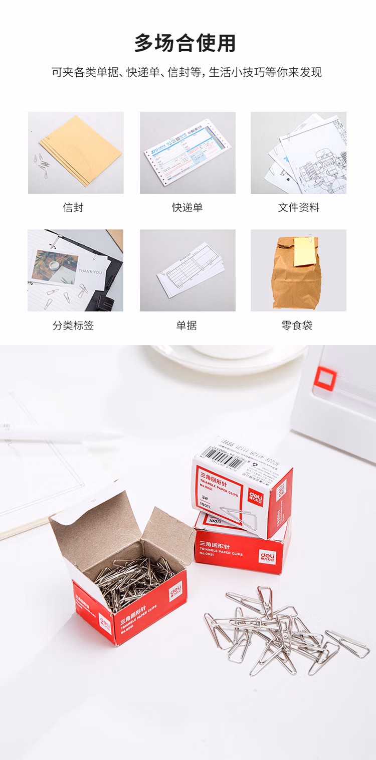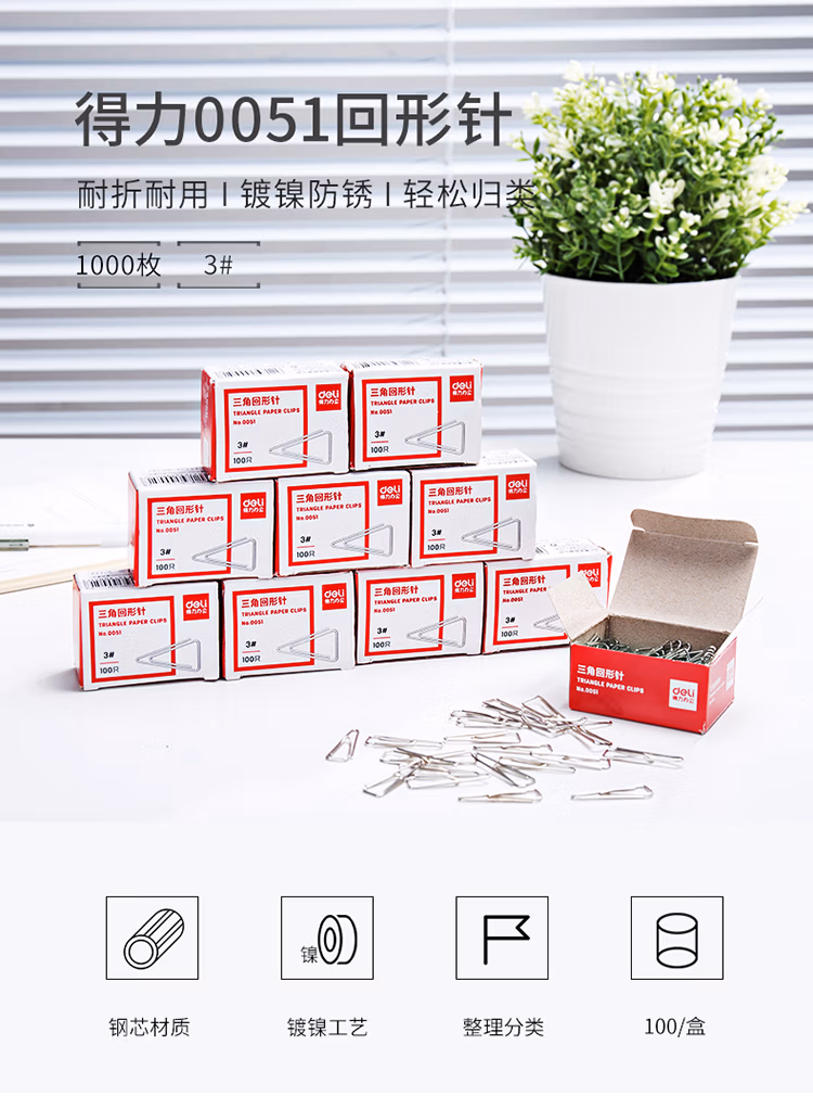 得力(deli) 0051 100枚/盒 三角形 回形针 (计价单位:盒) 银色 10盒装