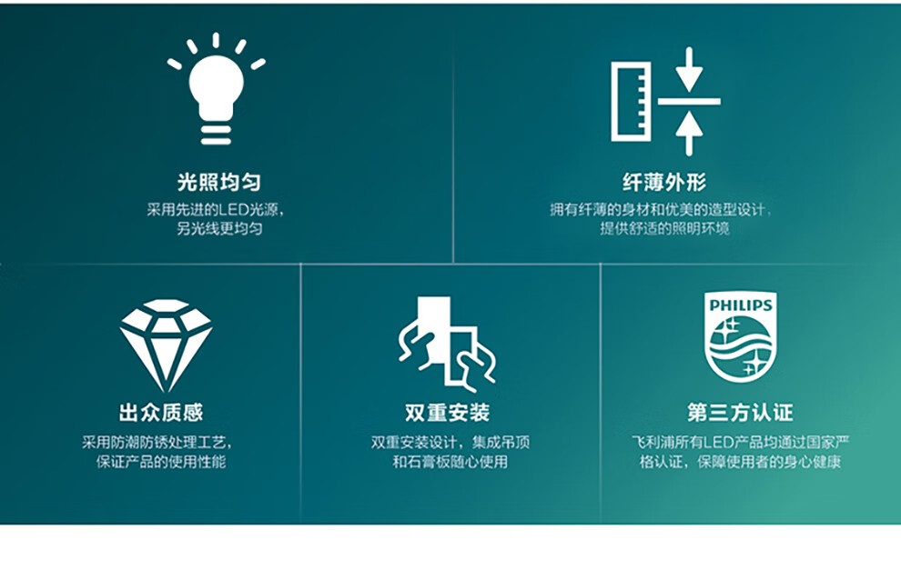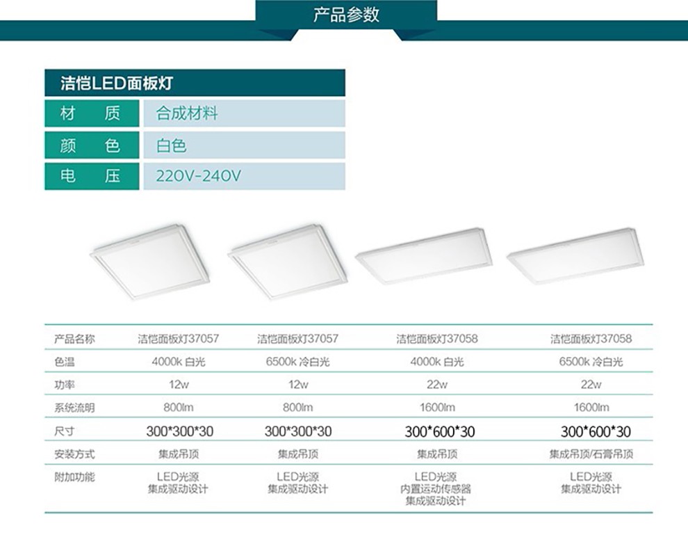 飞利浦(PHILIPS) 厨卫集成吊顶浴室灯厕所LED面板灯厨房灯卫生间嵌入式灯具铝扣板办公室格栅灯 【集成吊顶】14w白光300x300白边