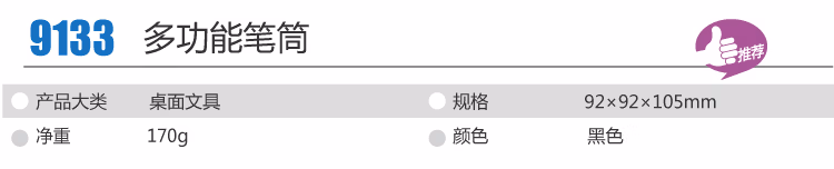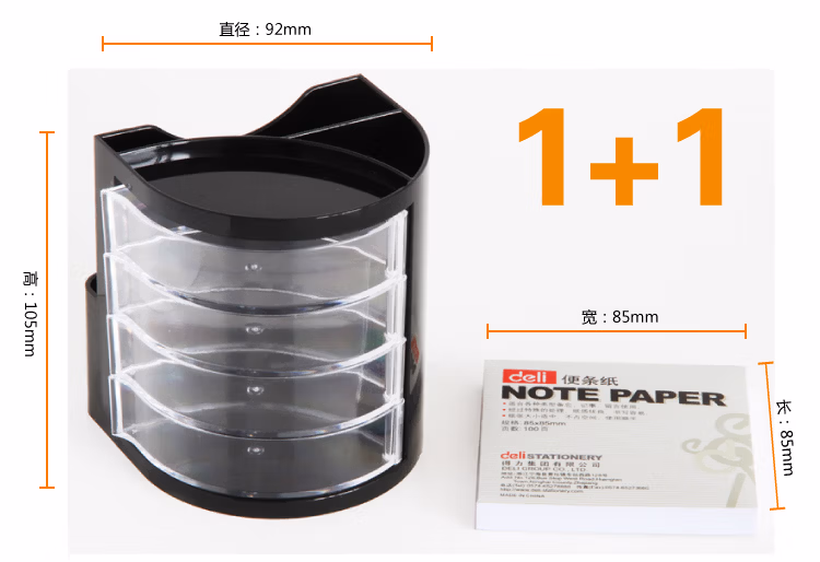 得力9133笔筒的尺寸为:92×92×105mm ;便条纸的尺寸为:85×85mm ,页数:100页