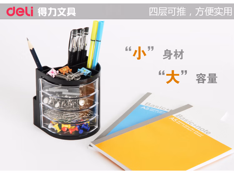 得力(deli) 9133 92*105mm 多功能 四层 笔筒 (计价单位:个) 黑色