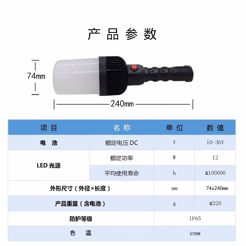 光源速 FW6320 3.7V 12W 4800mA 6000K 便携式工作棒灯 1.00 盏/台 (计价单位:台) 黑色