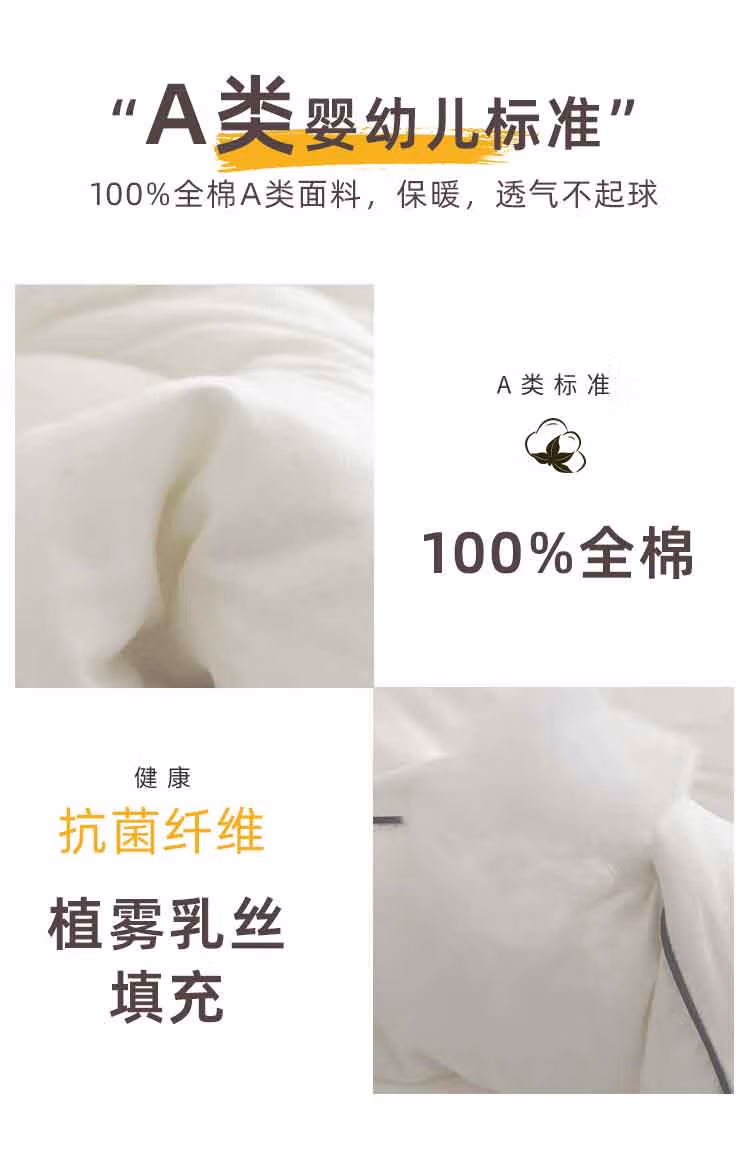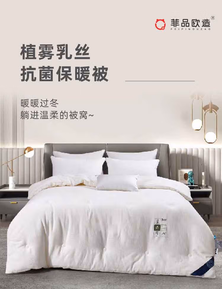 菲品欧造 F01002 原棉植雾乳丝蛋白 面料:100*棉 填充:植雾乳丝2500g 尺寸:200*230cm 1*25 被子 1.00 件/床 (计价单位:床) 白色