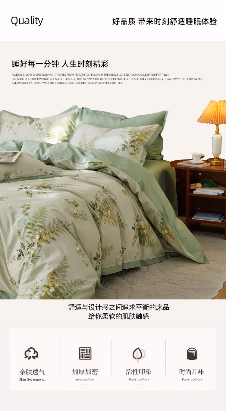 • 商品名称:伊伊爱40S加密铂金柔棉四件套 林夕绿 200*230cm/TJ0JD02301962