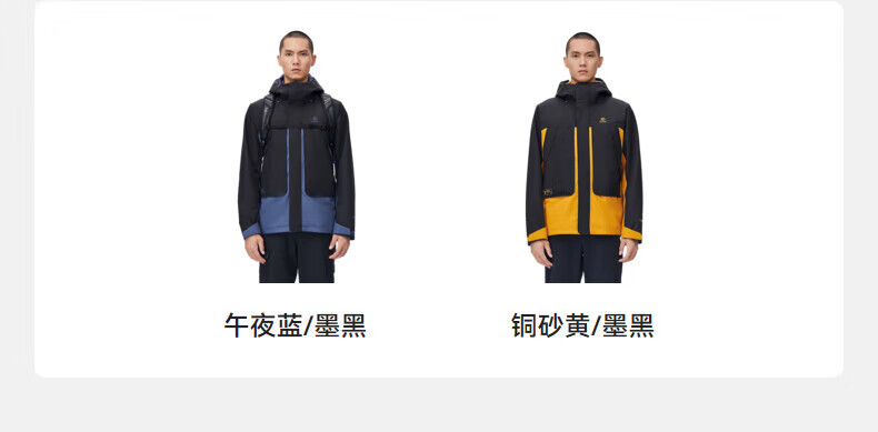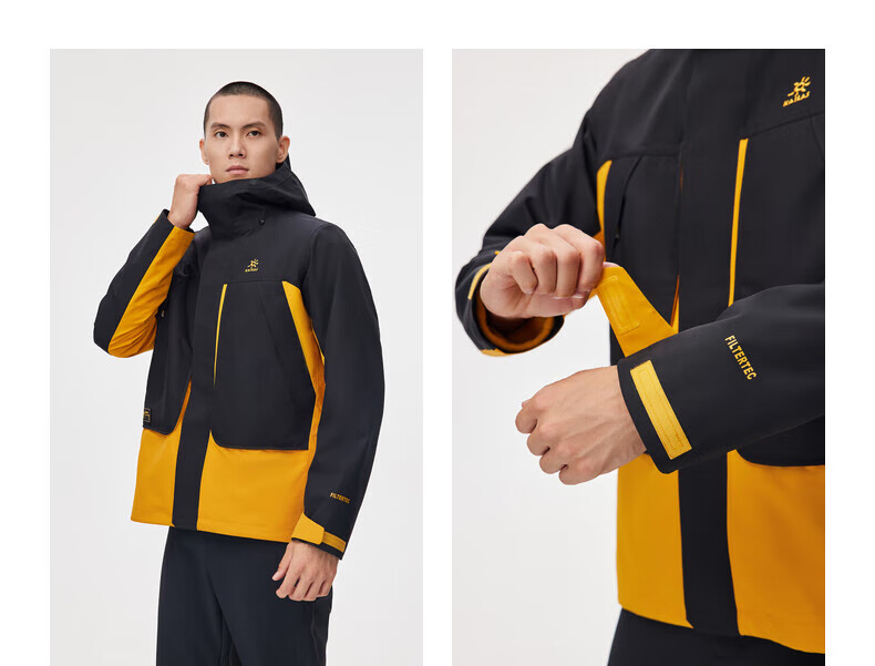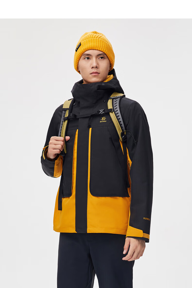凯乐石(KAILAS)三合一冲锋衣 男款秋冬防寒保暖抓绒内胆可拆卸连帽登山外套 KG2241112 铜砂黄/墨黑 (S-3XL可选)