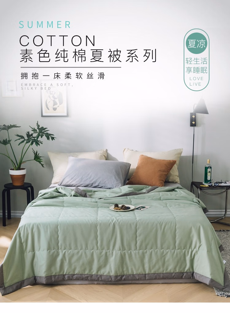 • 商品名称:伊伊爱素色纯棉拼色边夏被新款绗缝空调被 Z02000122 天蓝 200x230