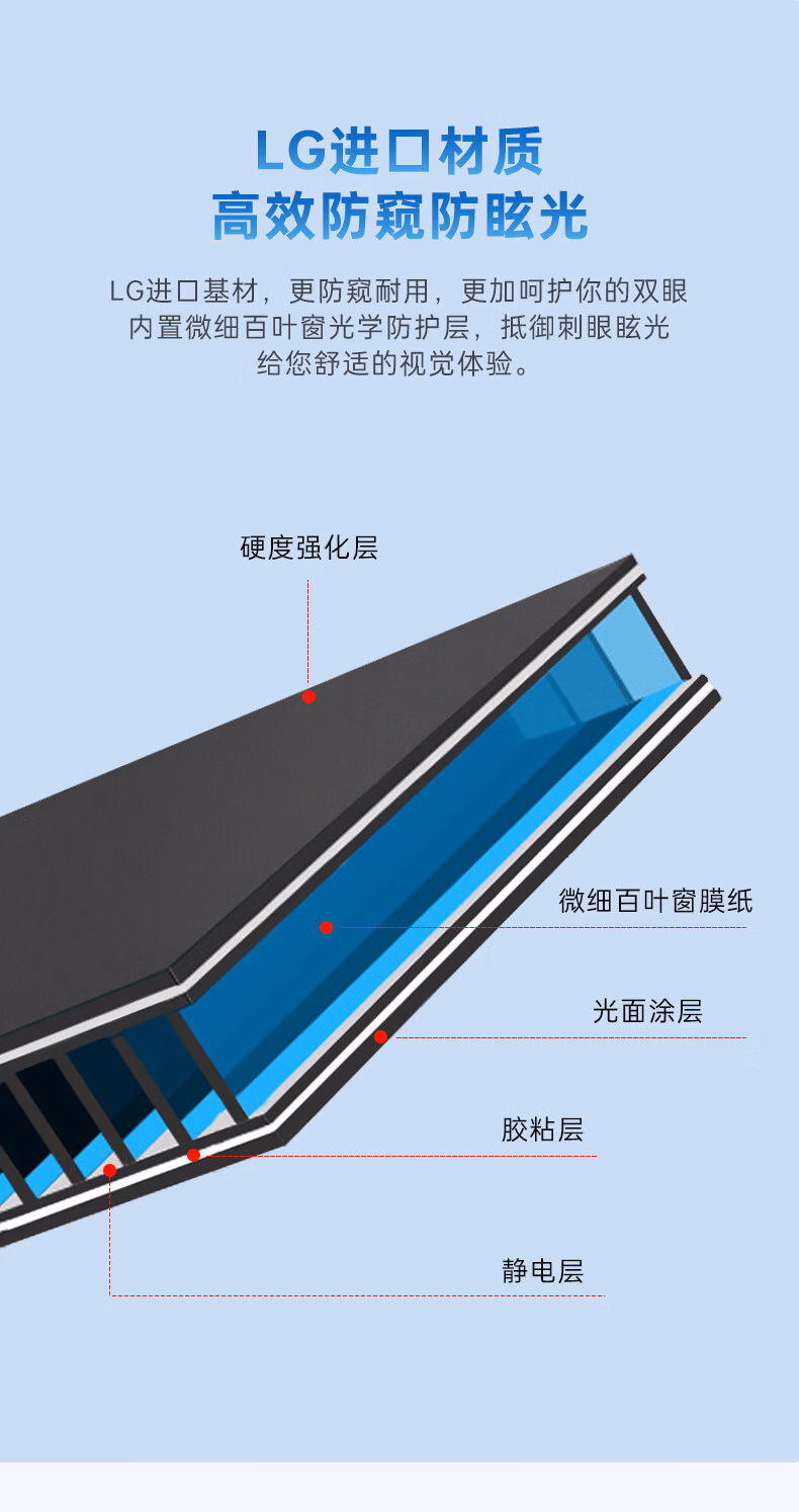 倍方 19英寸 16:10 410x256mm 台式电脑显示器防窥膜 1.00 个/片 (计价单位:片) 透明黑