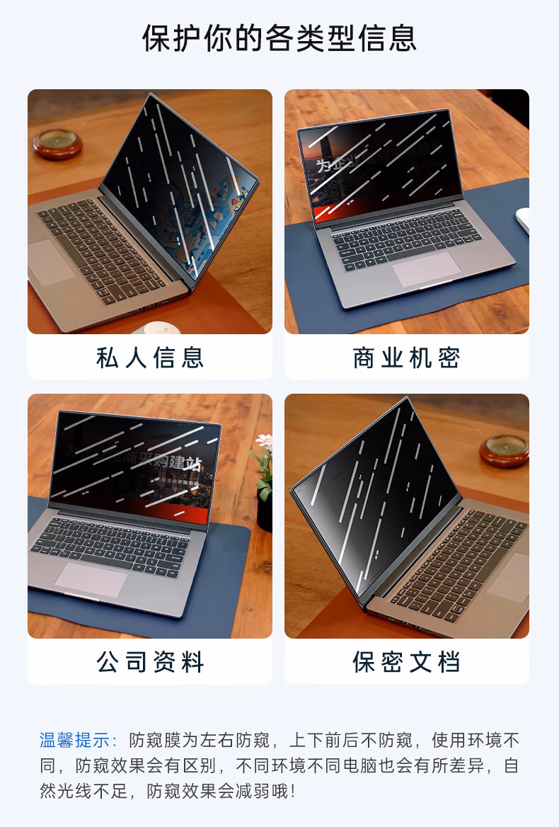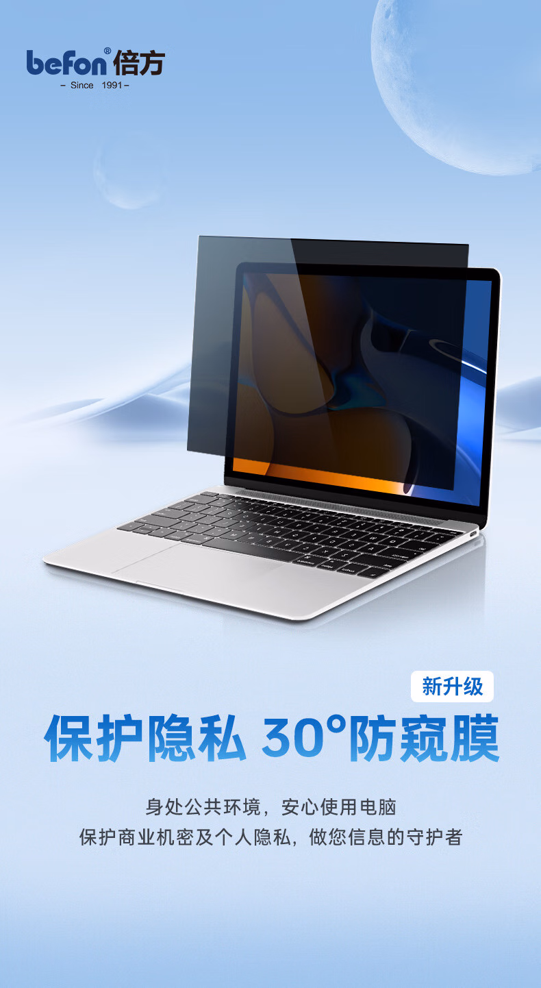 • 商品名称:倍方笔记本电脑防窥膜 通用显示器屏幕防窥片 隐私保护膜 防反光膜 进口材质 19英寸(16:10)
