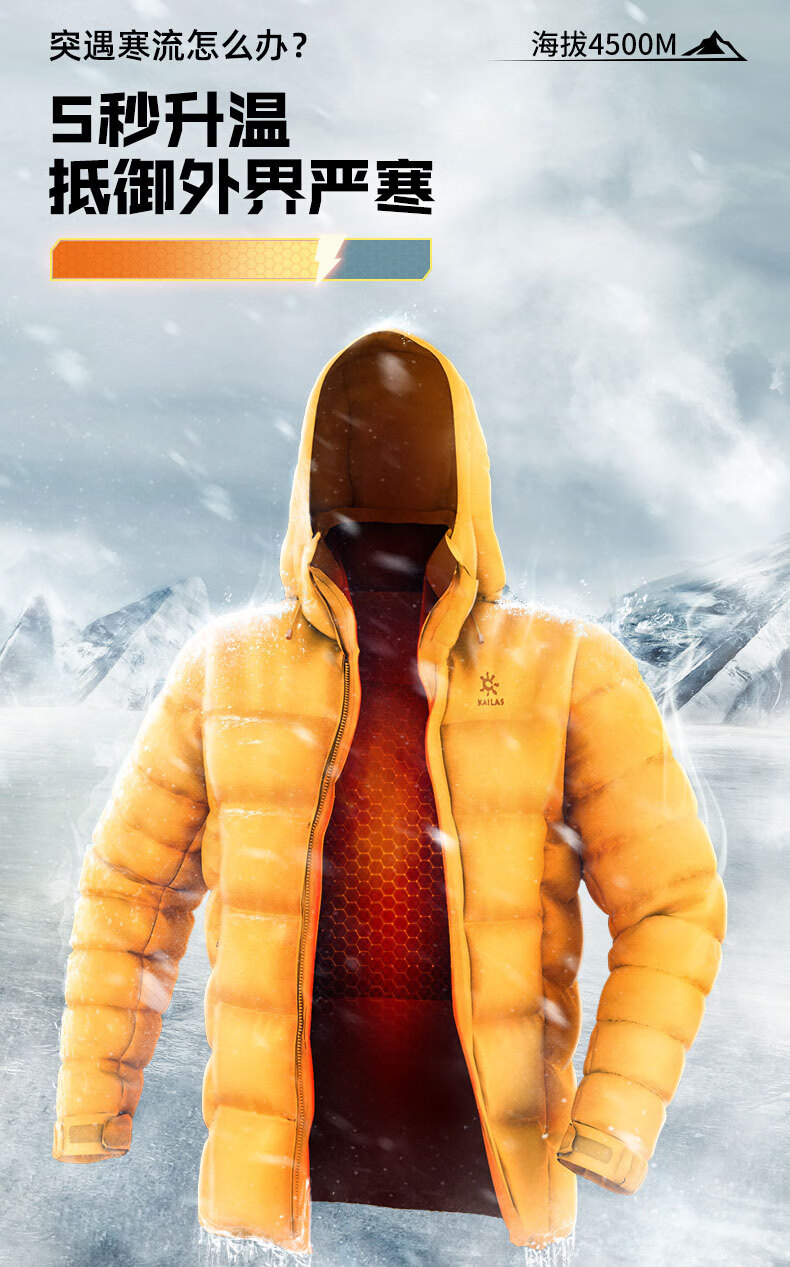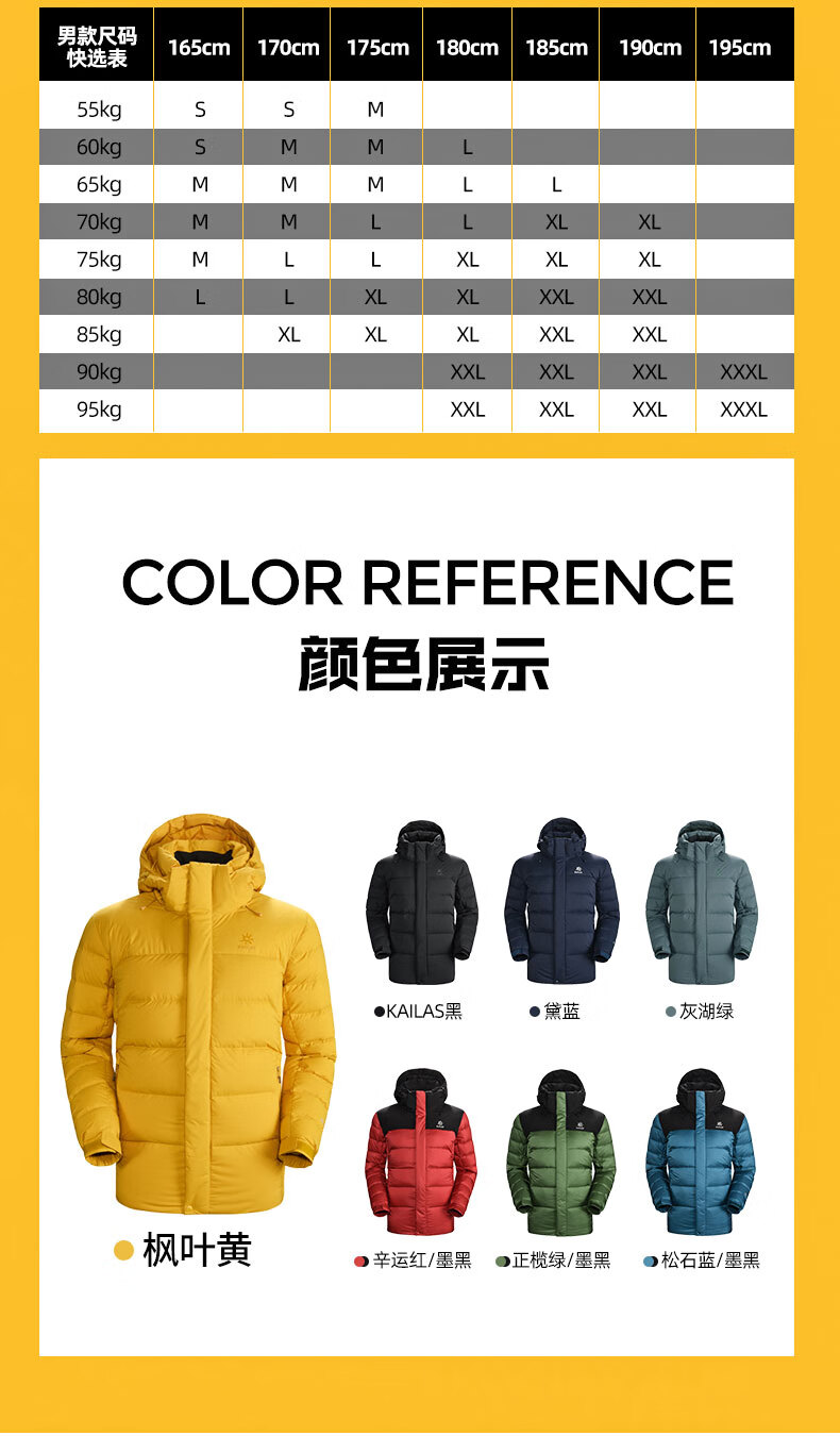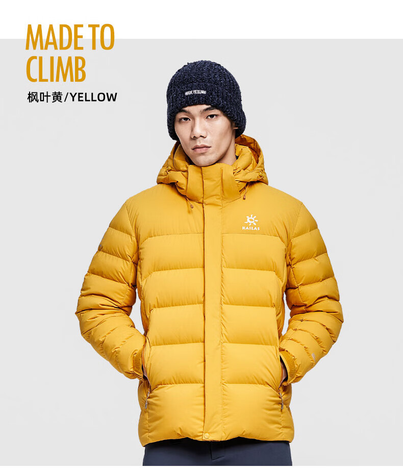凯乐石(KAILAS)旅行厚羽绒 男款冬季加厚白鹅绒800蓬羽绒服防寒保暖防风外套 KG2133508 枫叶黄(S-3XL码可选)