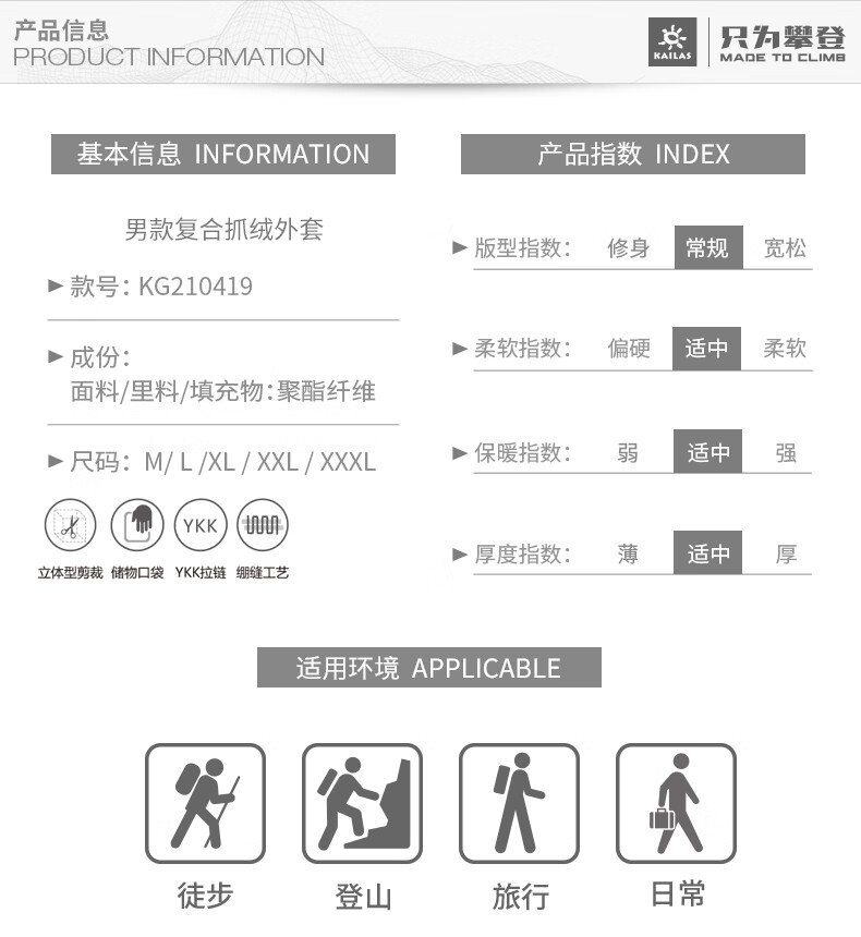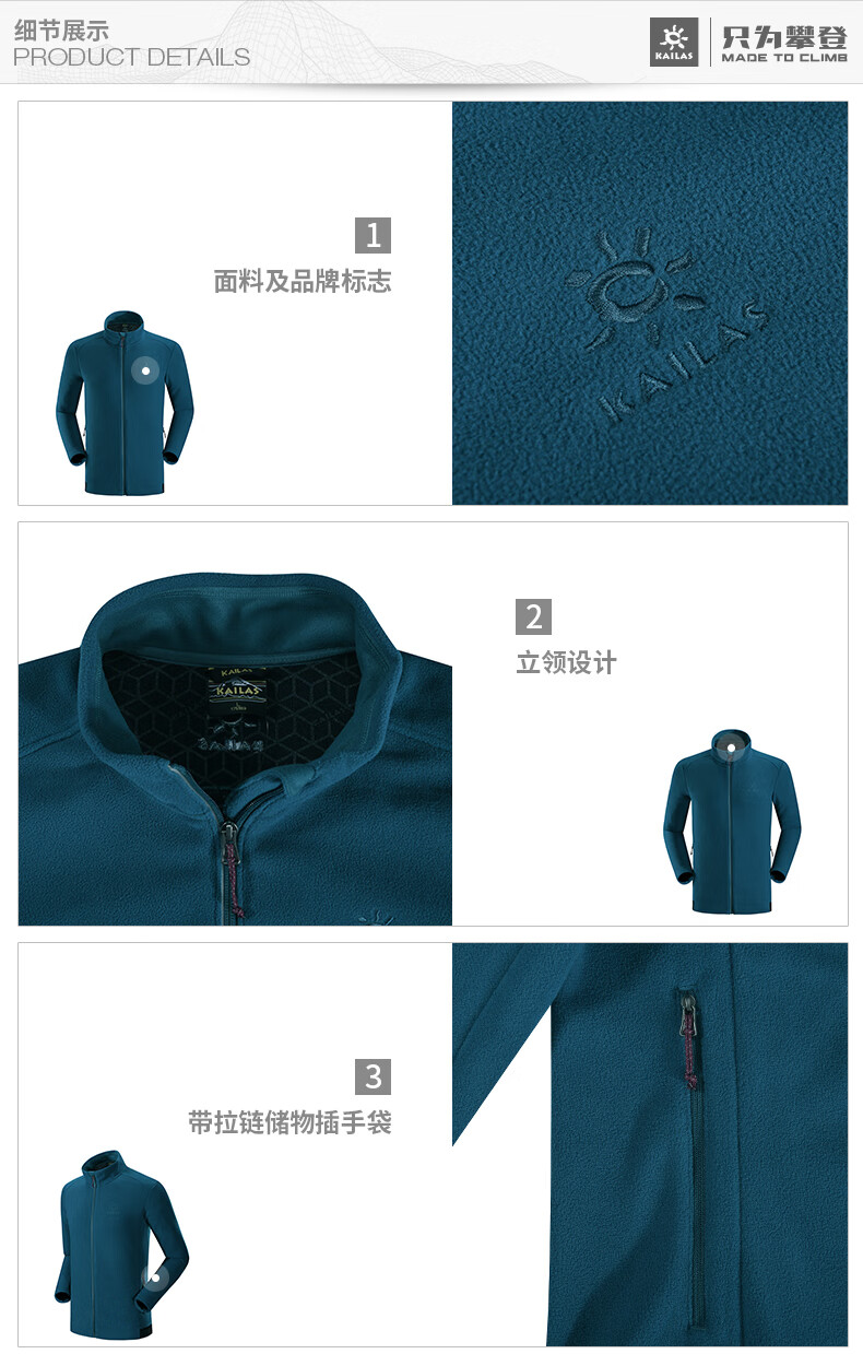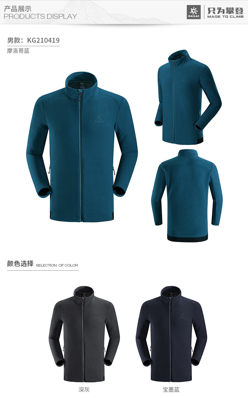 凯乐石(KAILAS)复合抓绒衣 男款秋冬季户外徒步旅行加厚防寒保暖外套 KG2032123 宝墨蓝 (S-3XL码可选)