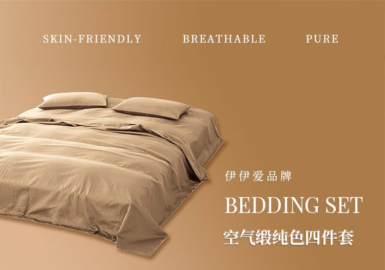 伊伊爱 TJ0SZ02201468 /220*240cm纯色纯棉空气缎四件套 床上套件 (计价单位:套) 奶咖色