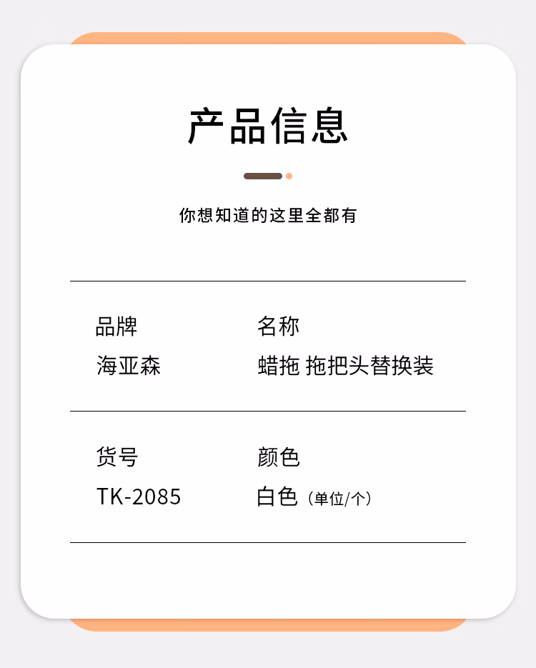 海亚森 TK-2085 30*115cm 棉线 拖把头 1.00 把/个 (计价单位:个) 白色