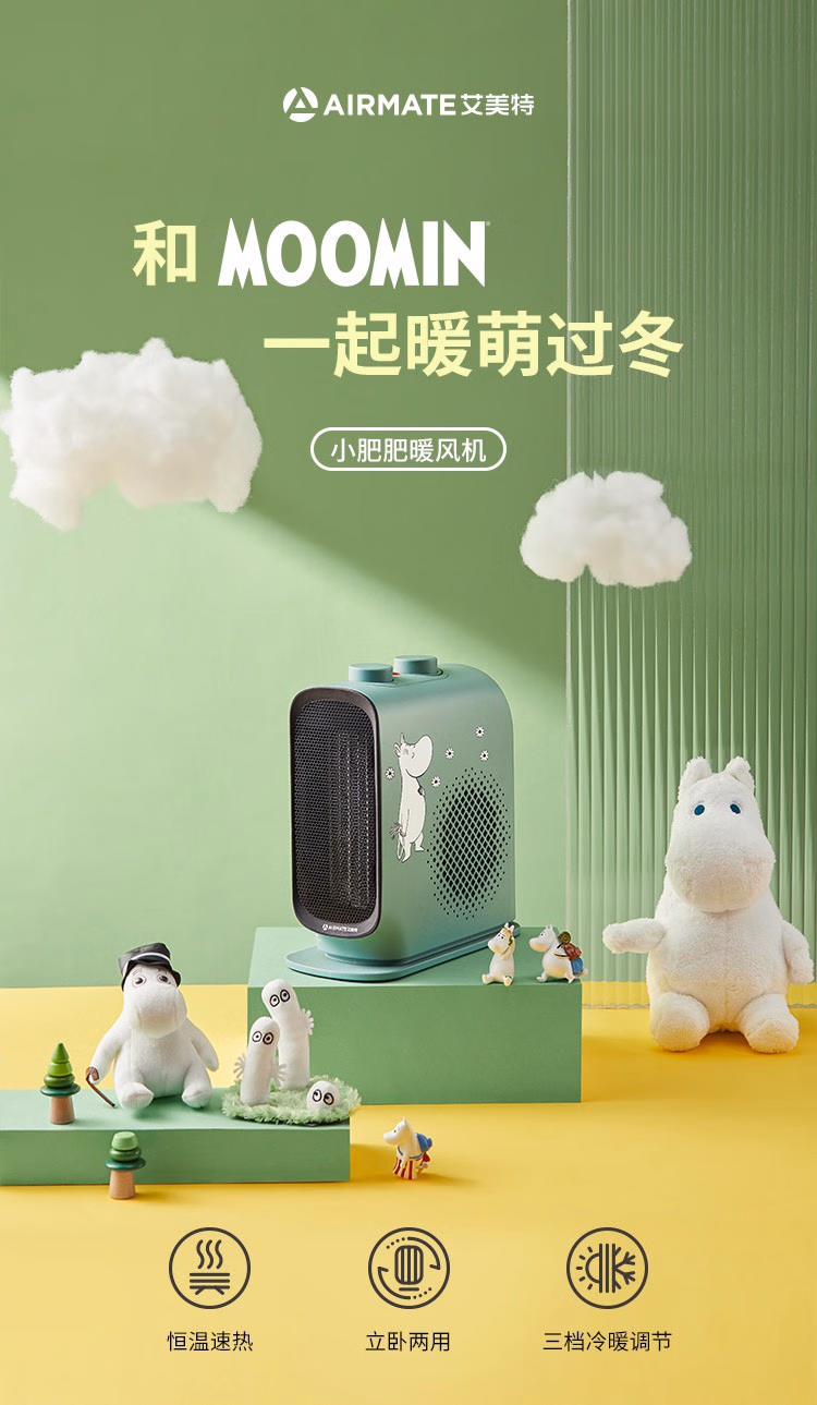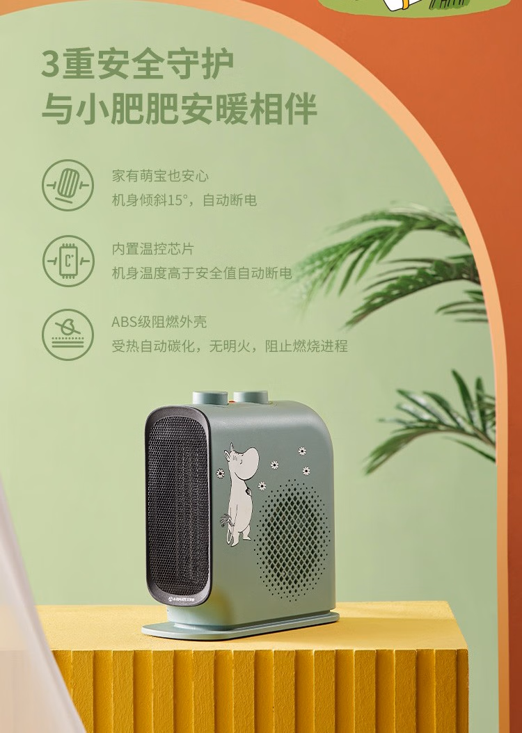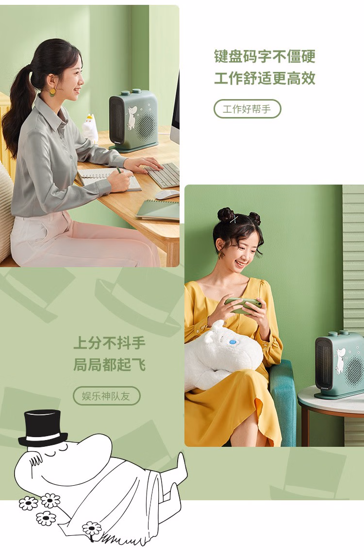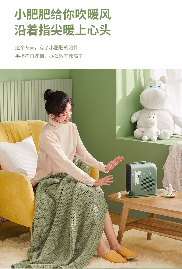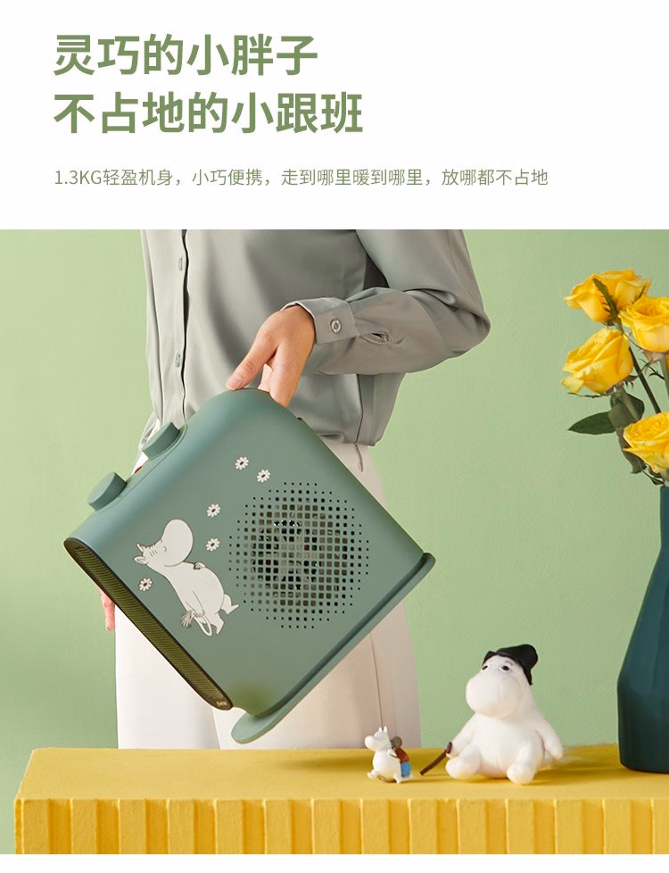 艾美特(AIRMATE) 取暖器暖风机桌面宿舍办公家用节能小型电暖气速热电暖器 WP20-X17P-2绿色姆明联名款