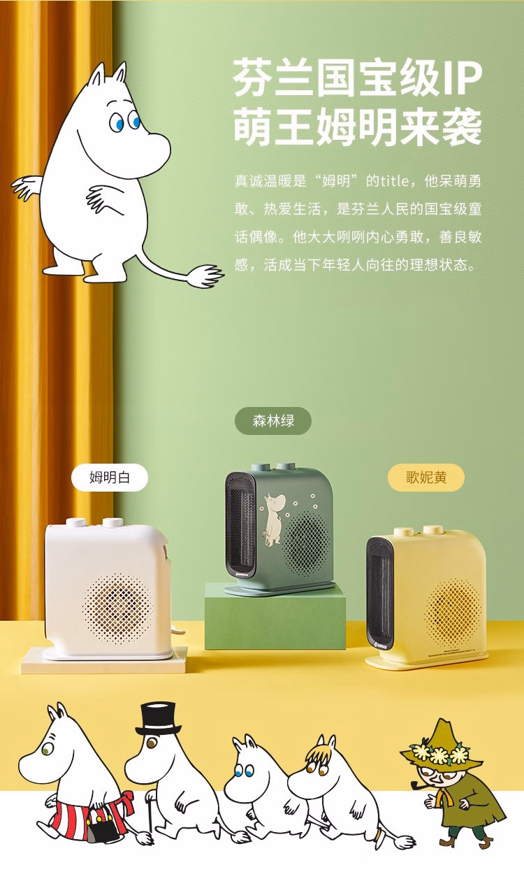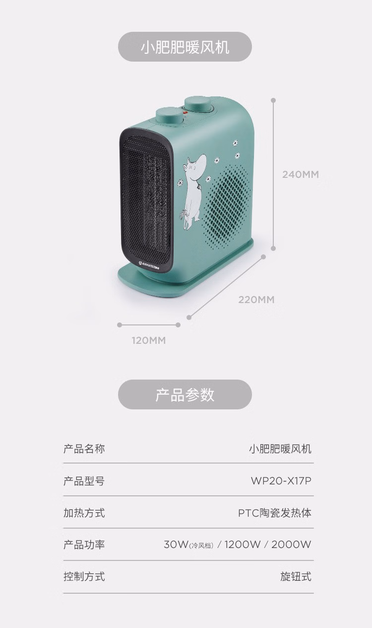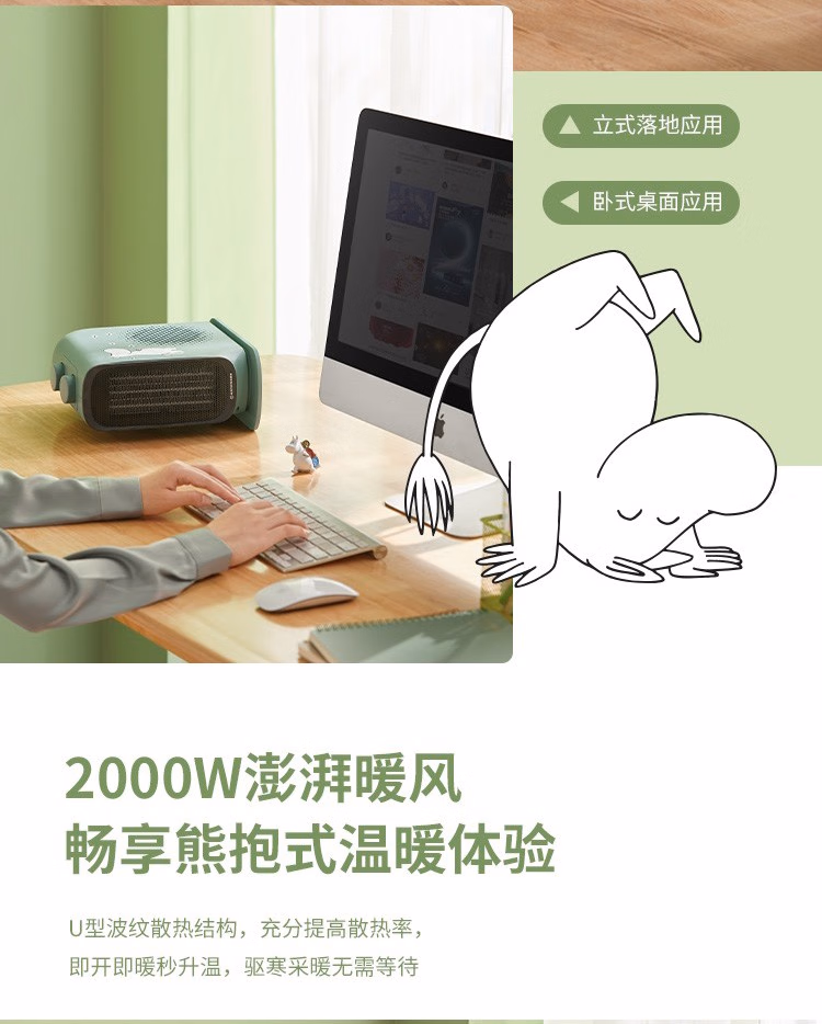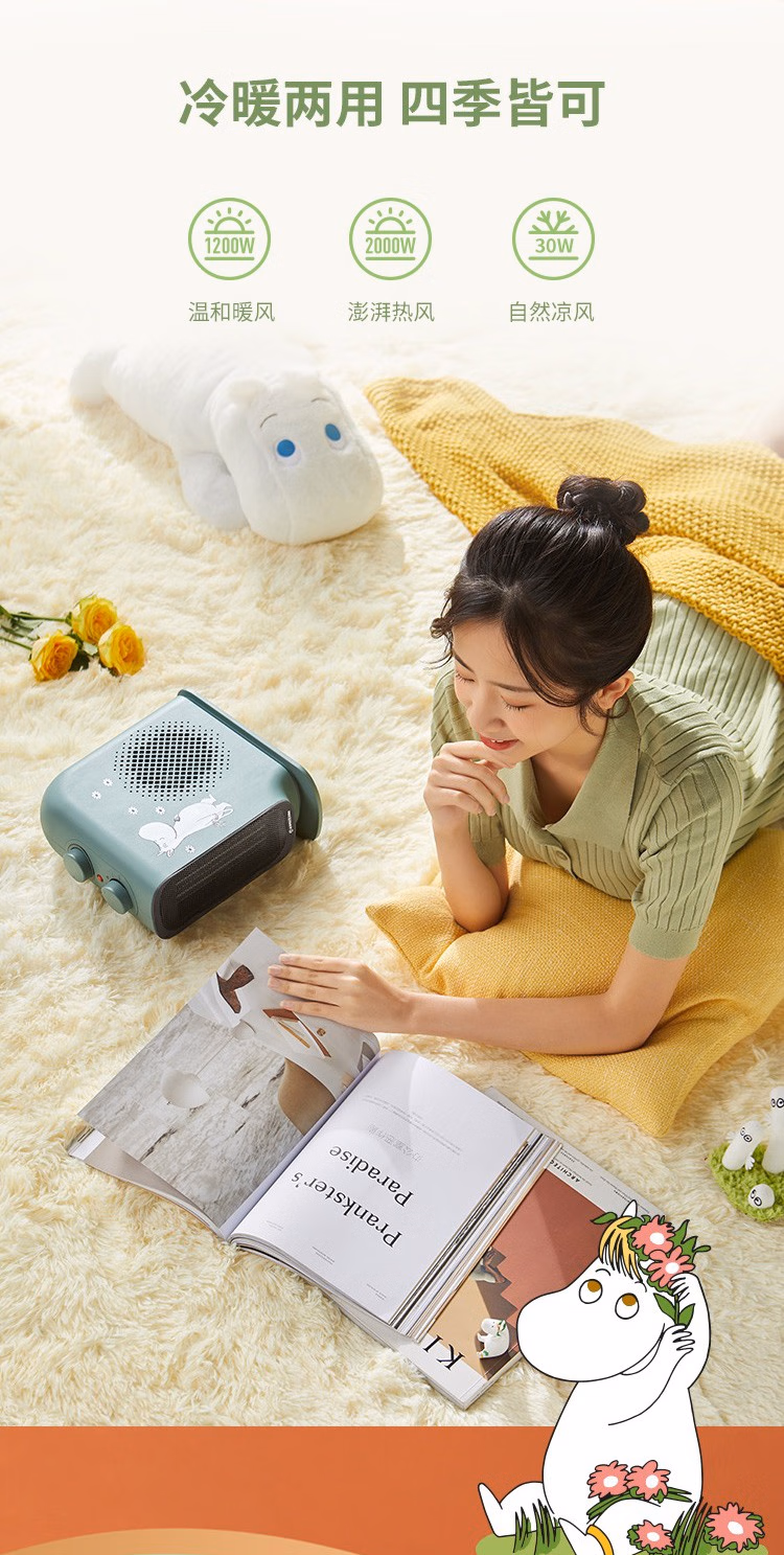 艾美特(AIRMATE) 取暖器暖风机桌面宿舍办公家用节能小型电暖气速热电暖器 WP20-X17P-2绿色姆明联名款