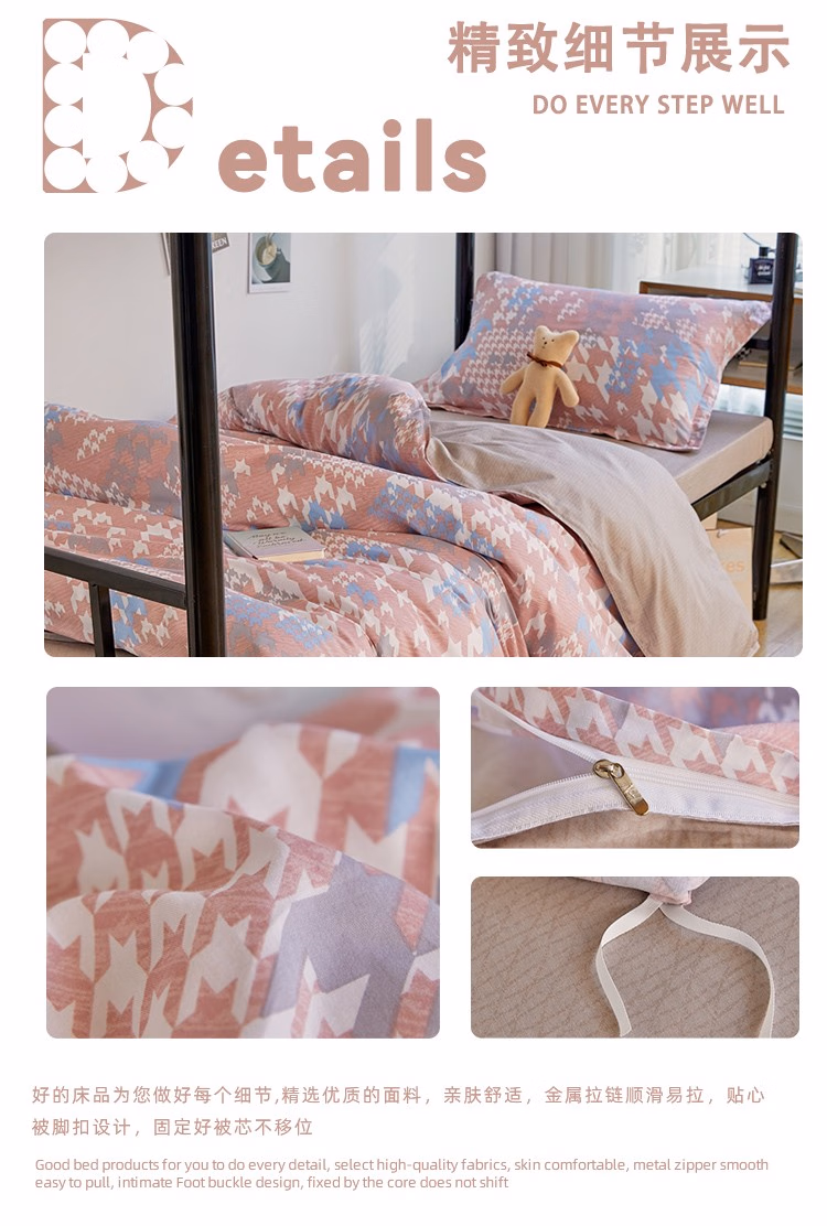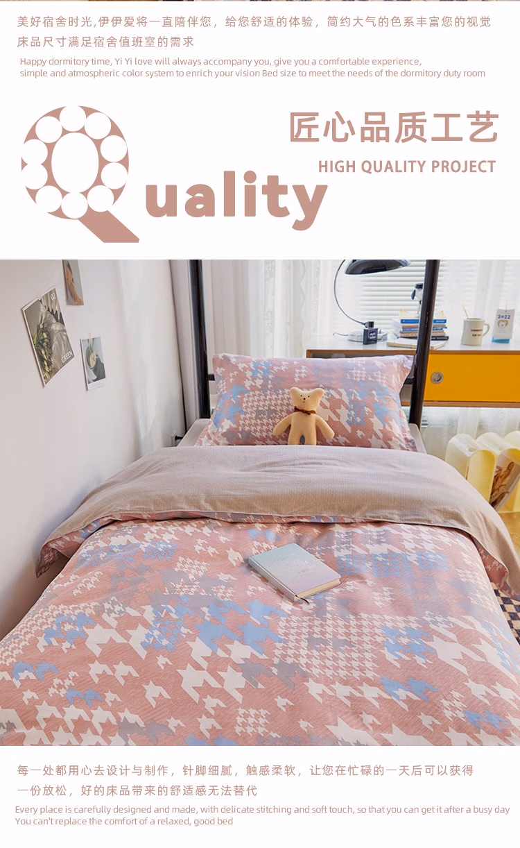 • 商品名称:伊伊爱 纯棉印花千鸟格粉三件套 千鸟格-粉/TJ0NH02201804 160*210cm