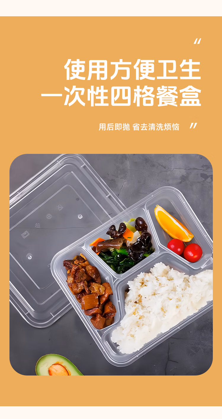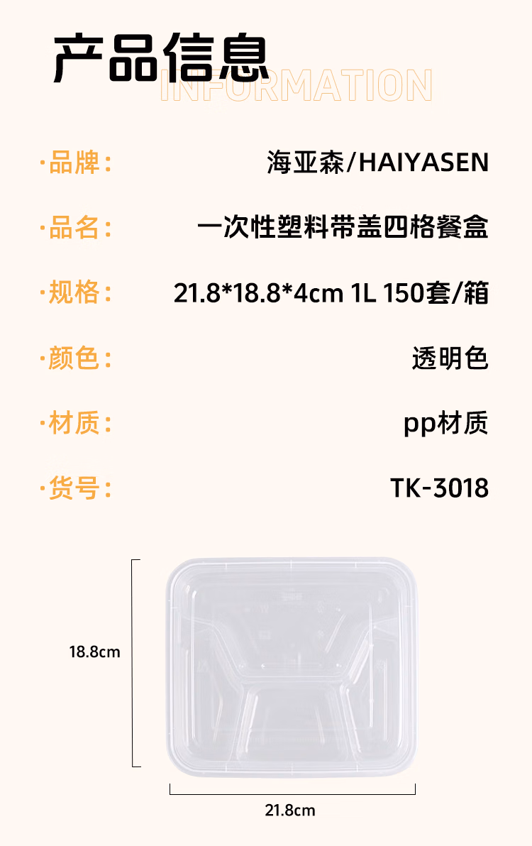海亚森 TK-3018 21.5*19*4.2cm 1L 一次性塑料带盖四格餐盒 150.00 个/箱 (计价单位:箱) 透明色