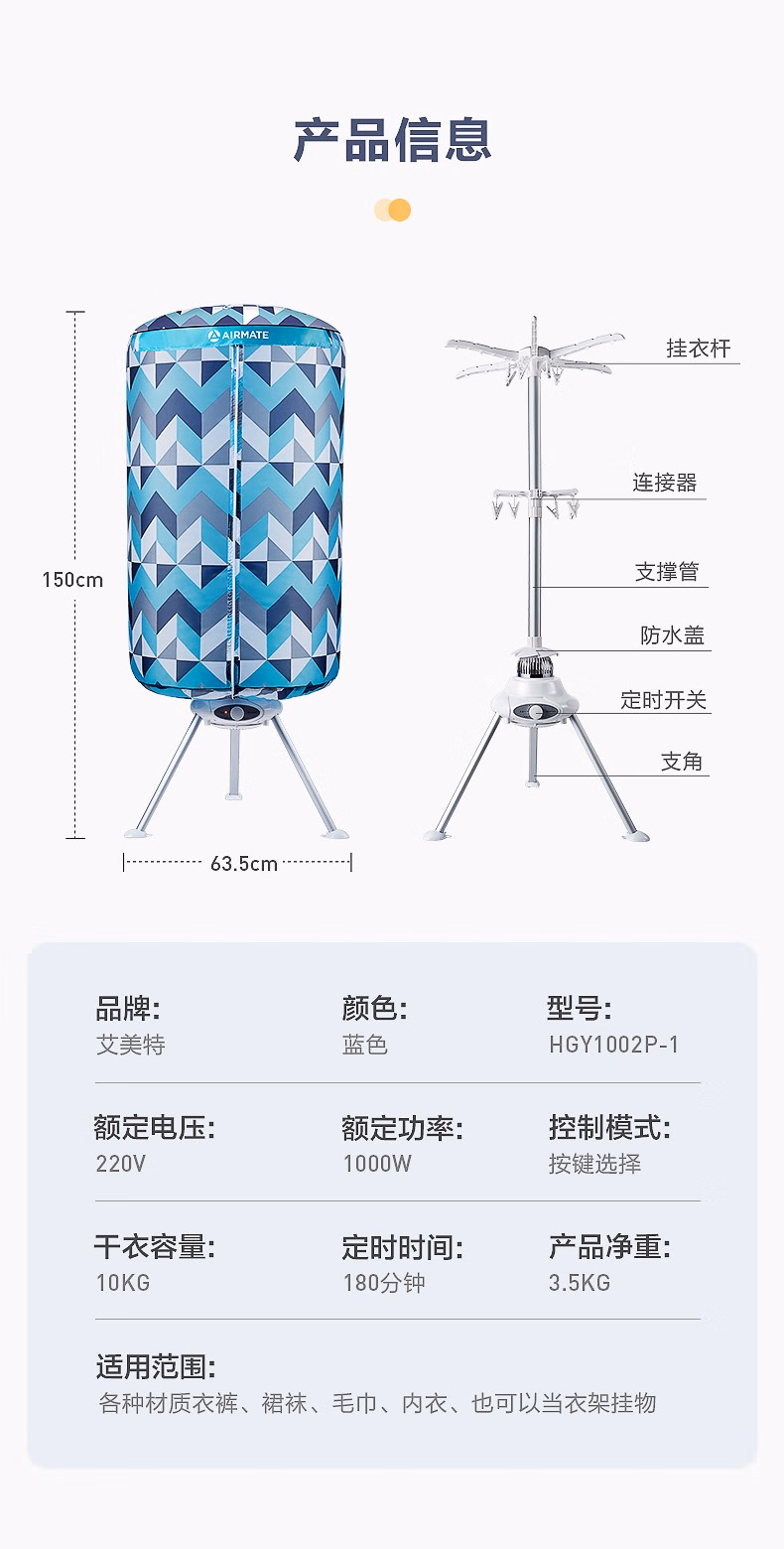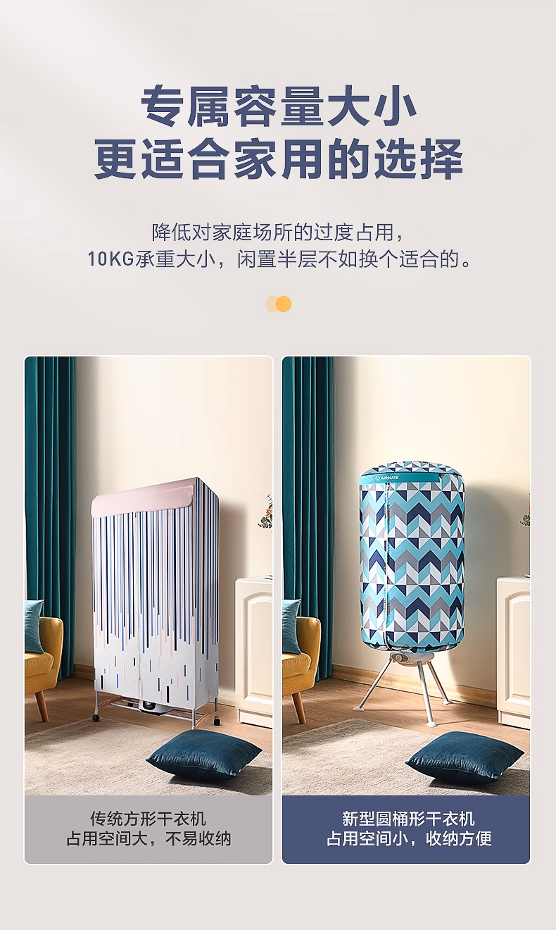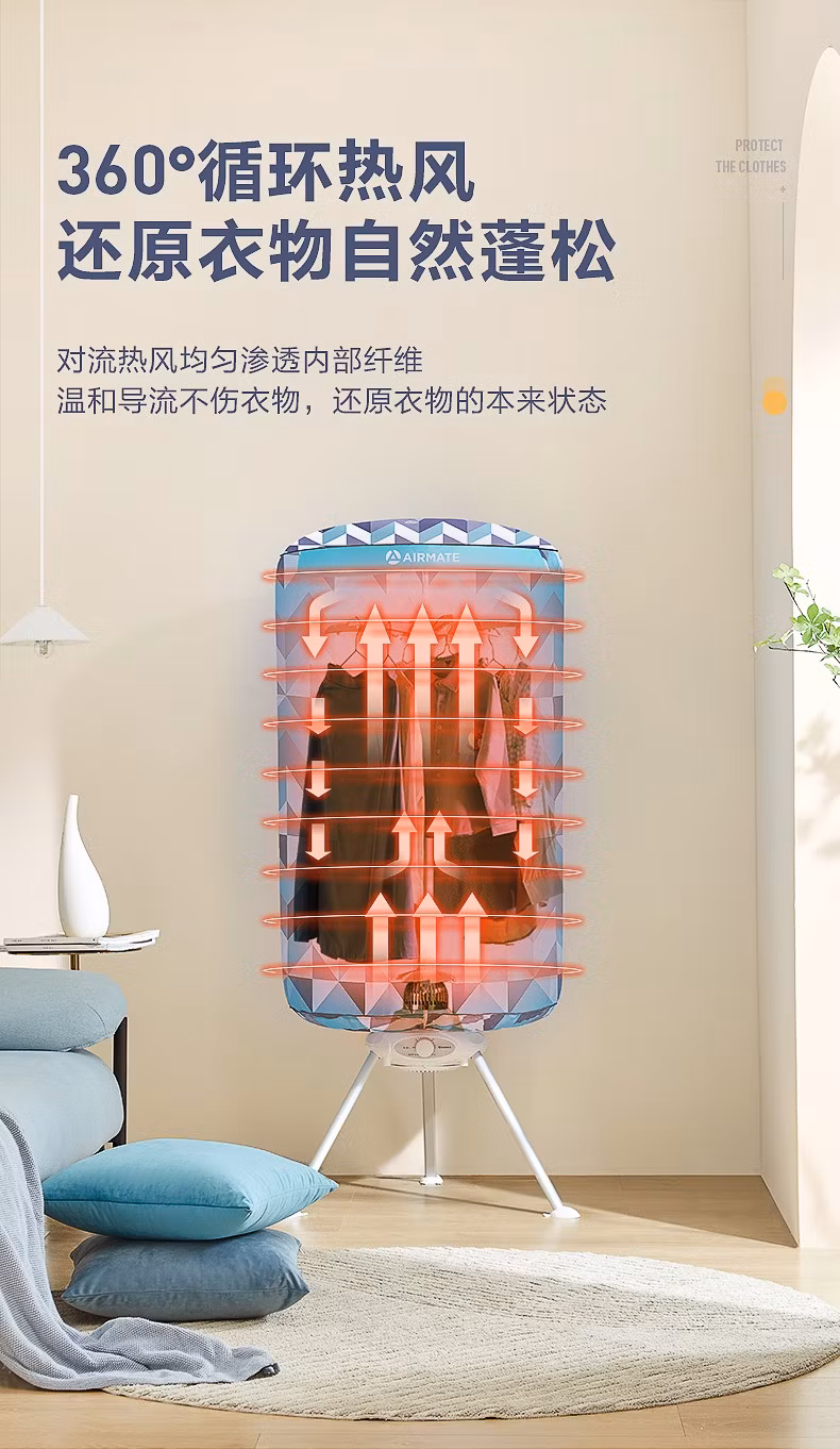 艾美特(AIRMATE) 家用干衣机烘衣机大容量婴儿衣物暖风定时 蓝色几何HGY1002P-1 单位:台