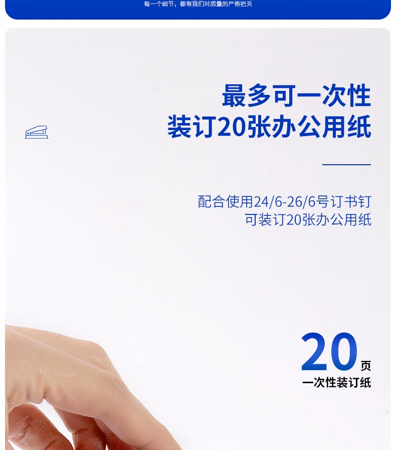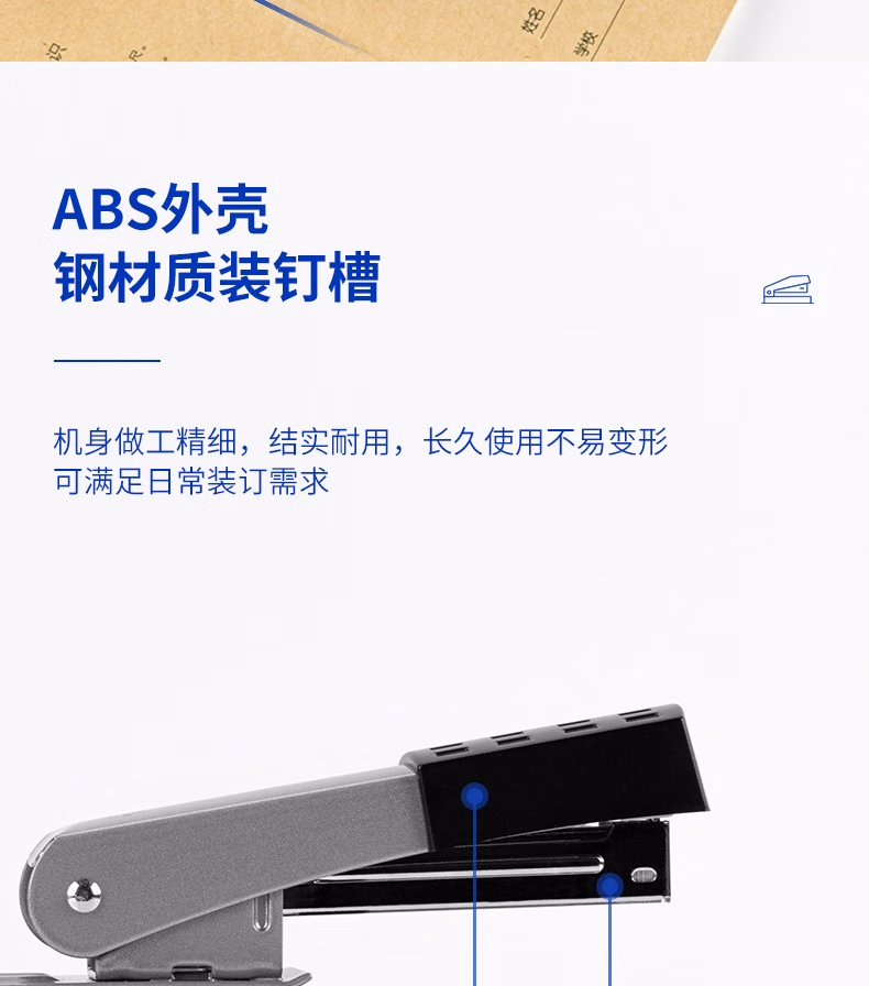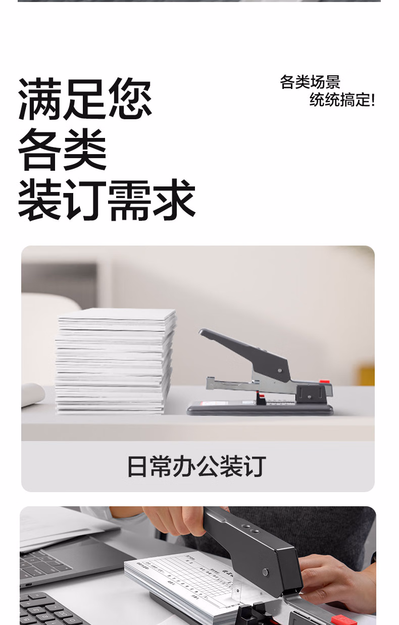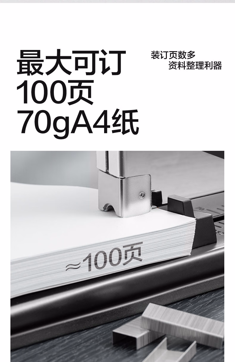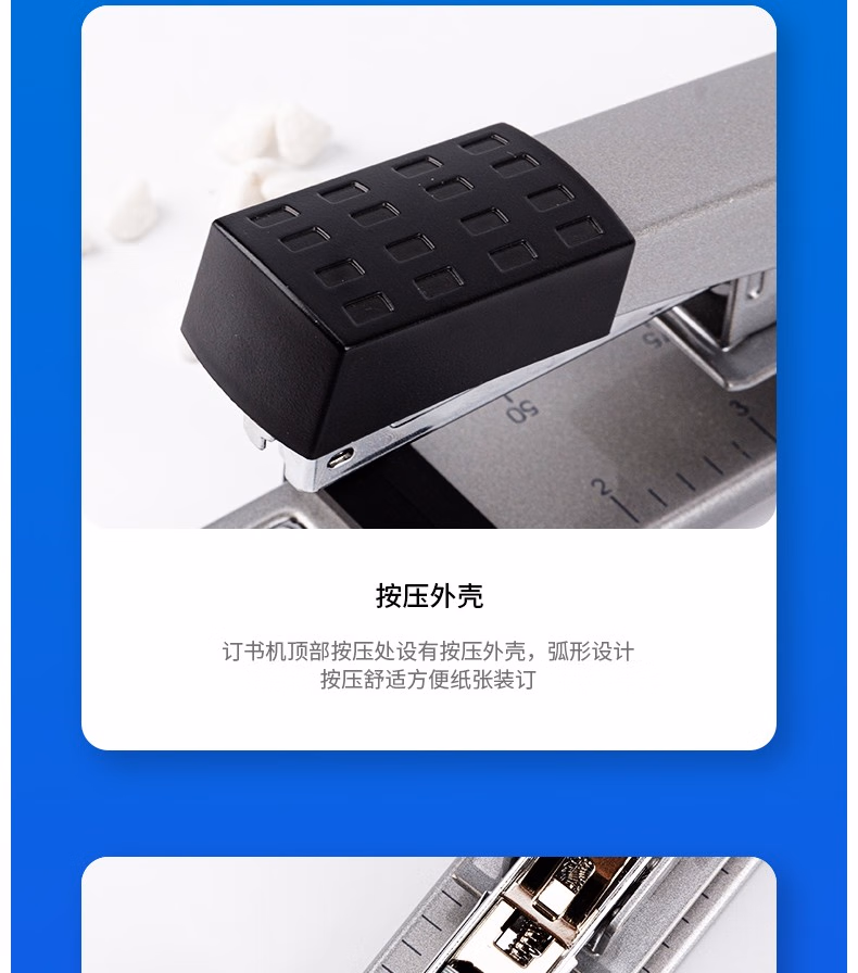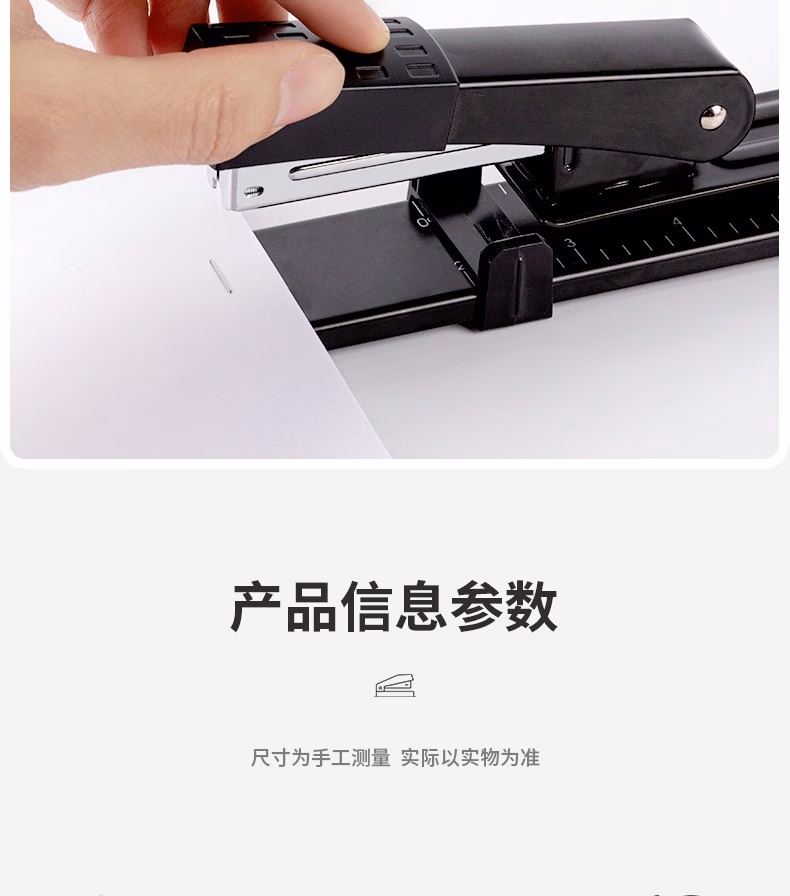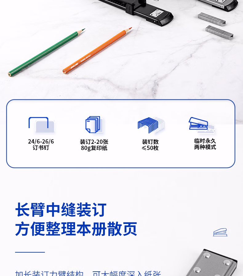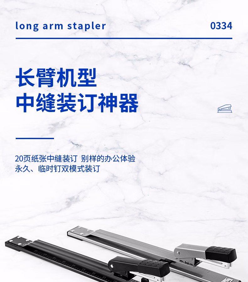 • 商品名称:得力(deli) 订书机大号 重型厚层加厚长臂中缝省力订书器 打印装订财务 办公用品 【长臂款】20页中缝订书机 0334