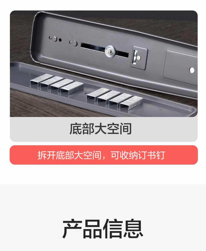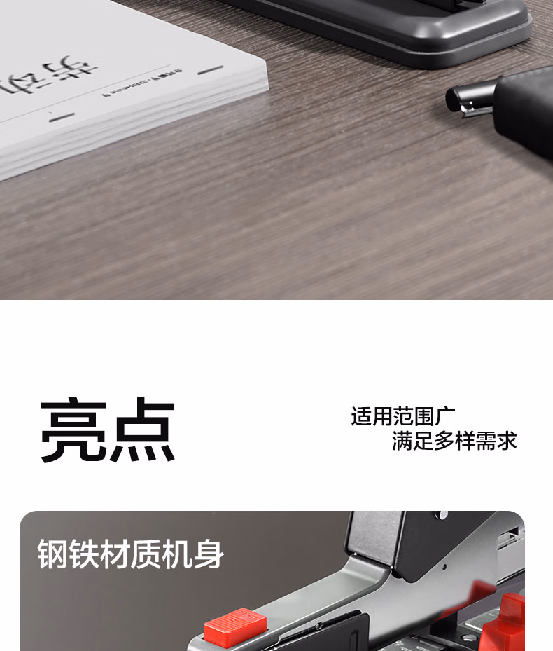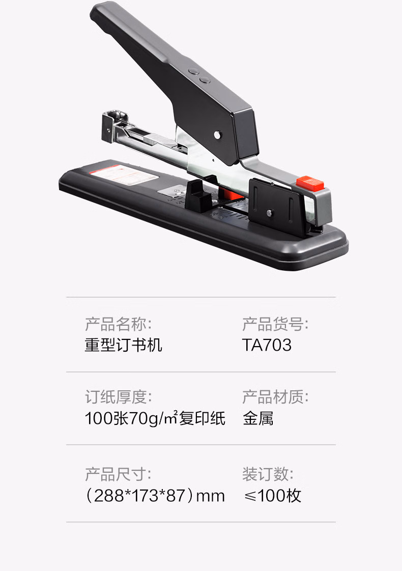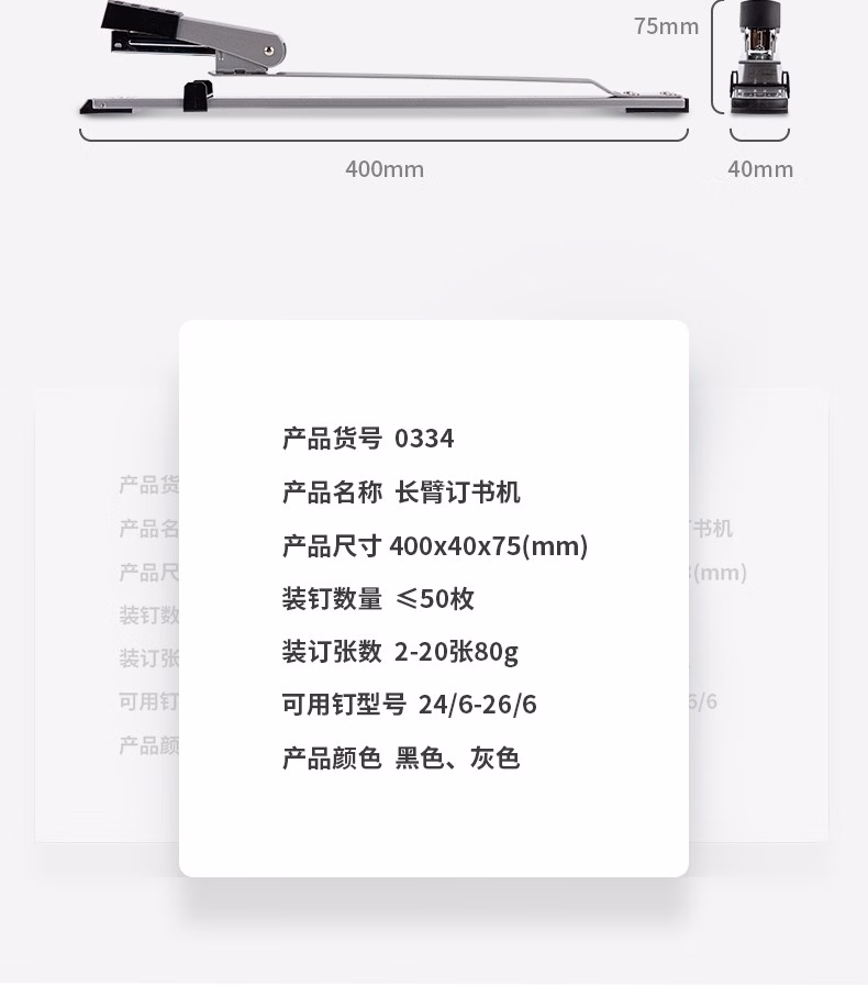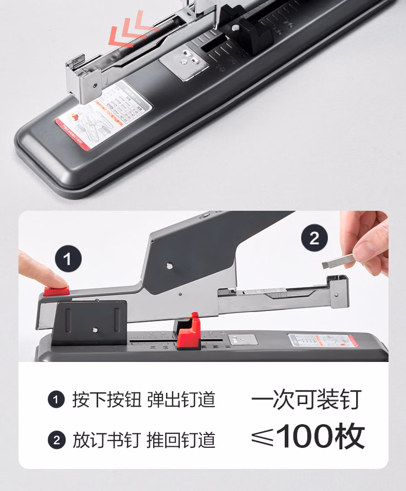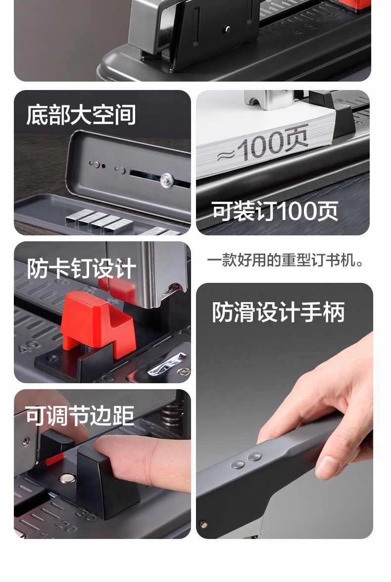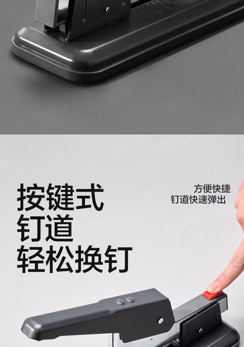 • 商品名称:得力(deli) 订书机大号 重型厚层加厚长臂中缝省力订书器 打印装订财务 办公用品 【长臂款】20页中缝订书机 0334