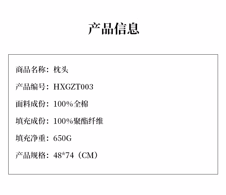红秀世纺 HXGZT003 48*74cm 枕头 1.00 件/个 (计价单位:个) 白色