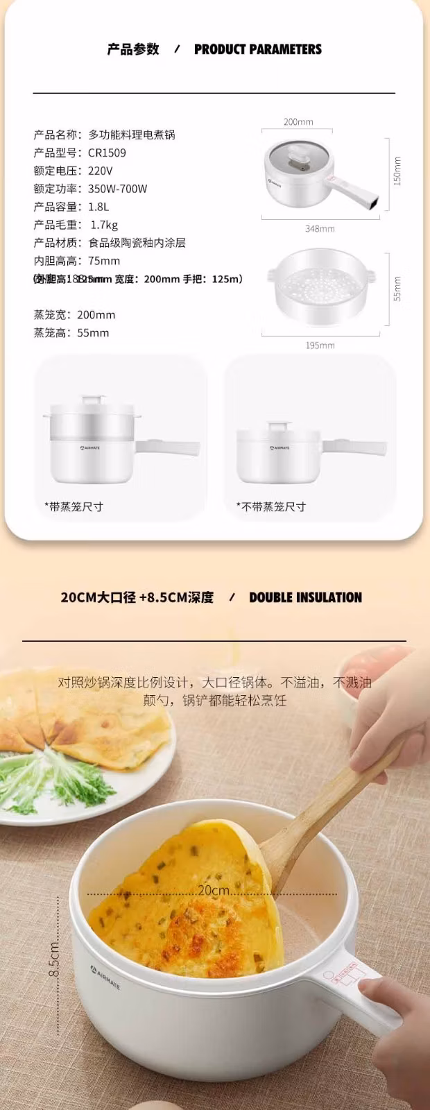 艾美特(Airmate) 电煮锅 多功能电火锅 CR1509