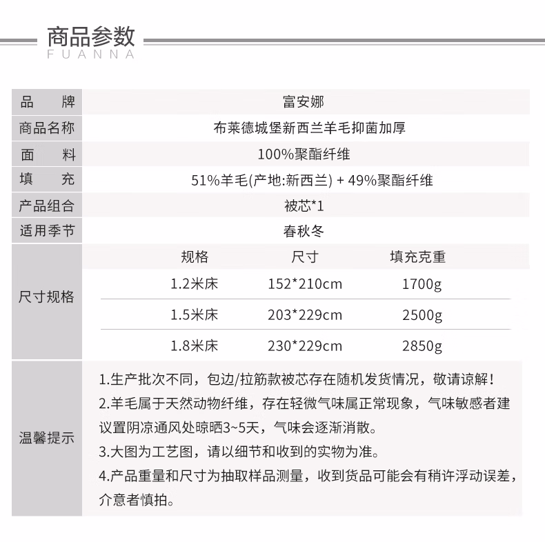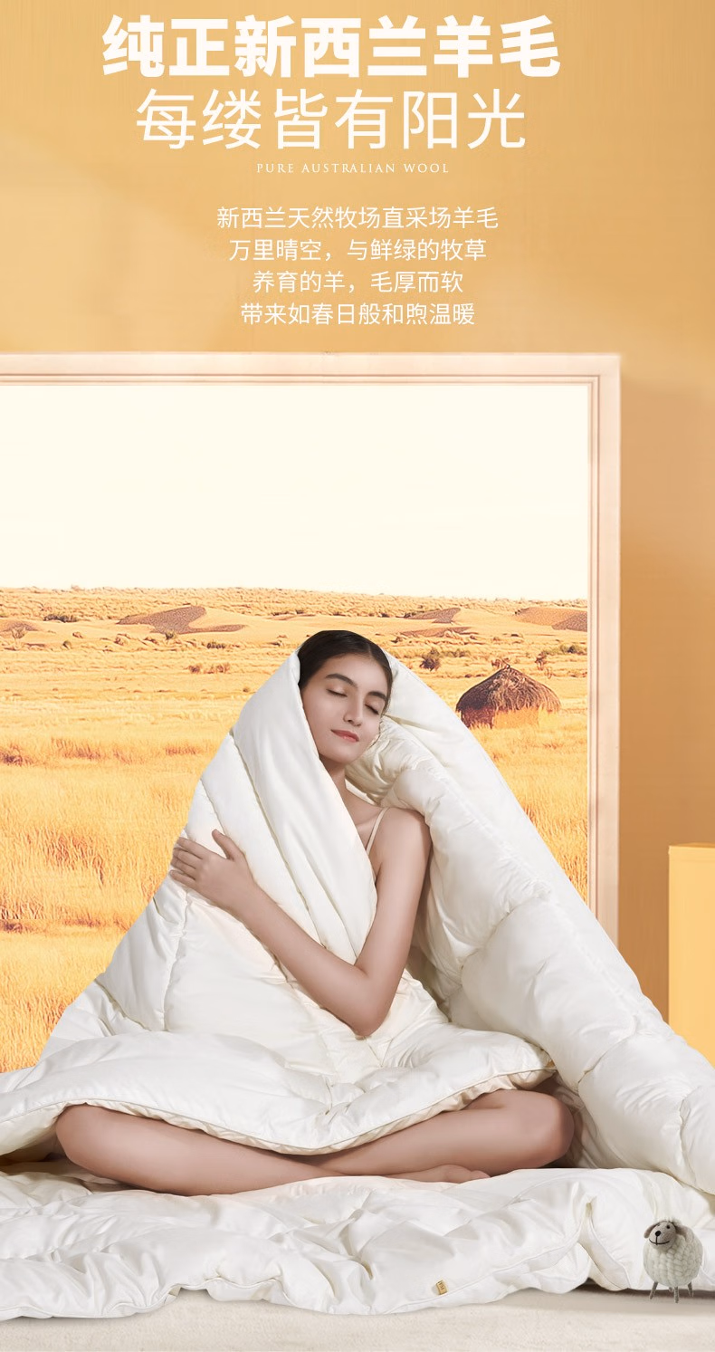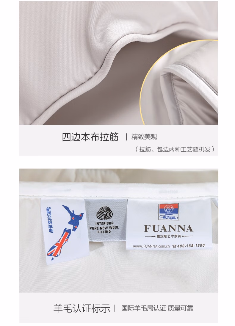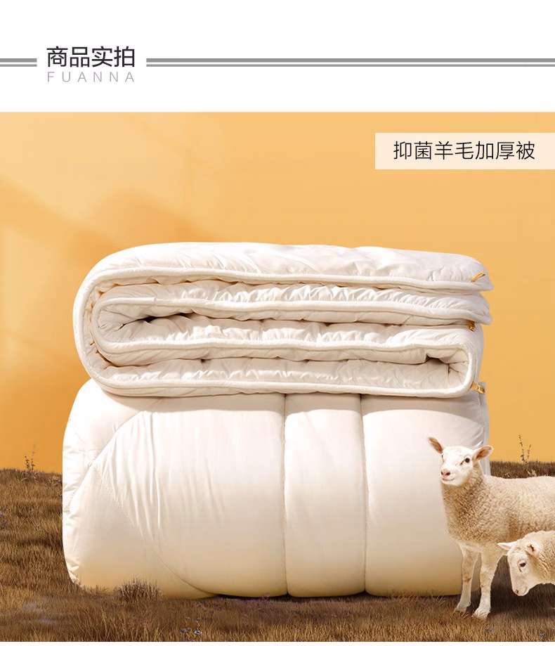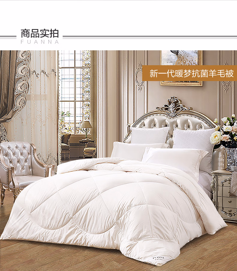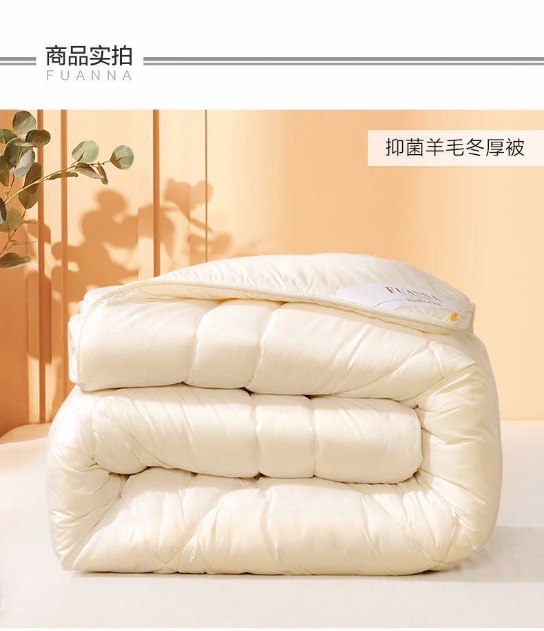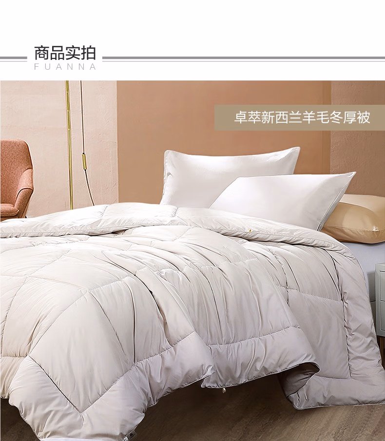 • 商品名称:富安娜 羊毛被子学生宿舍秋冬被芯羊毛保暖混合被被褥 冬被【100%新西兰羊毛】卓萃 203*229cm