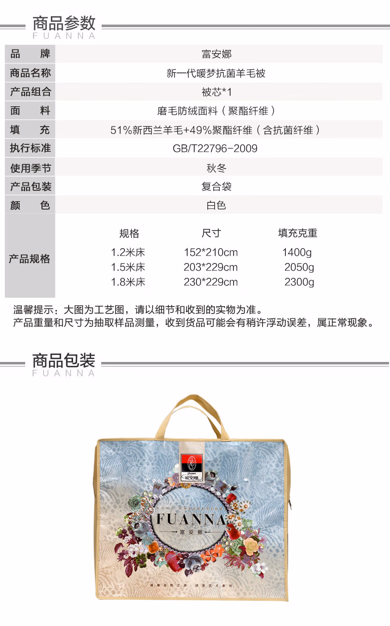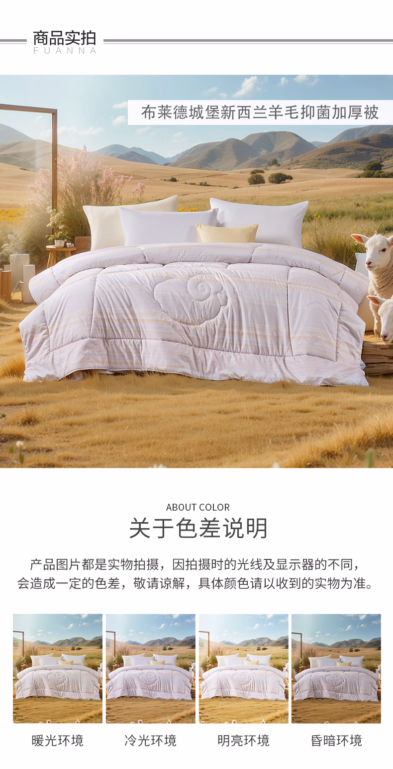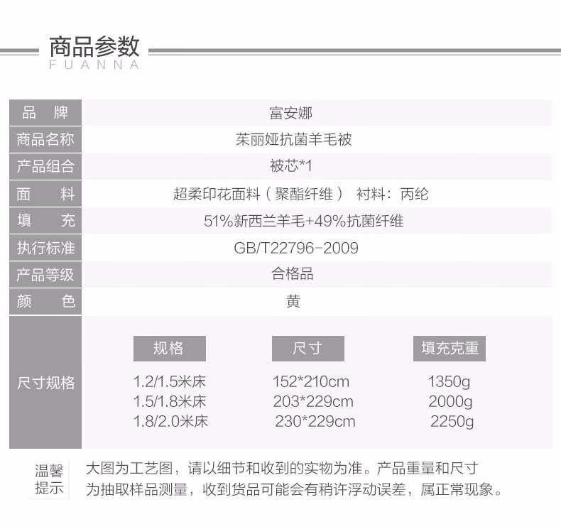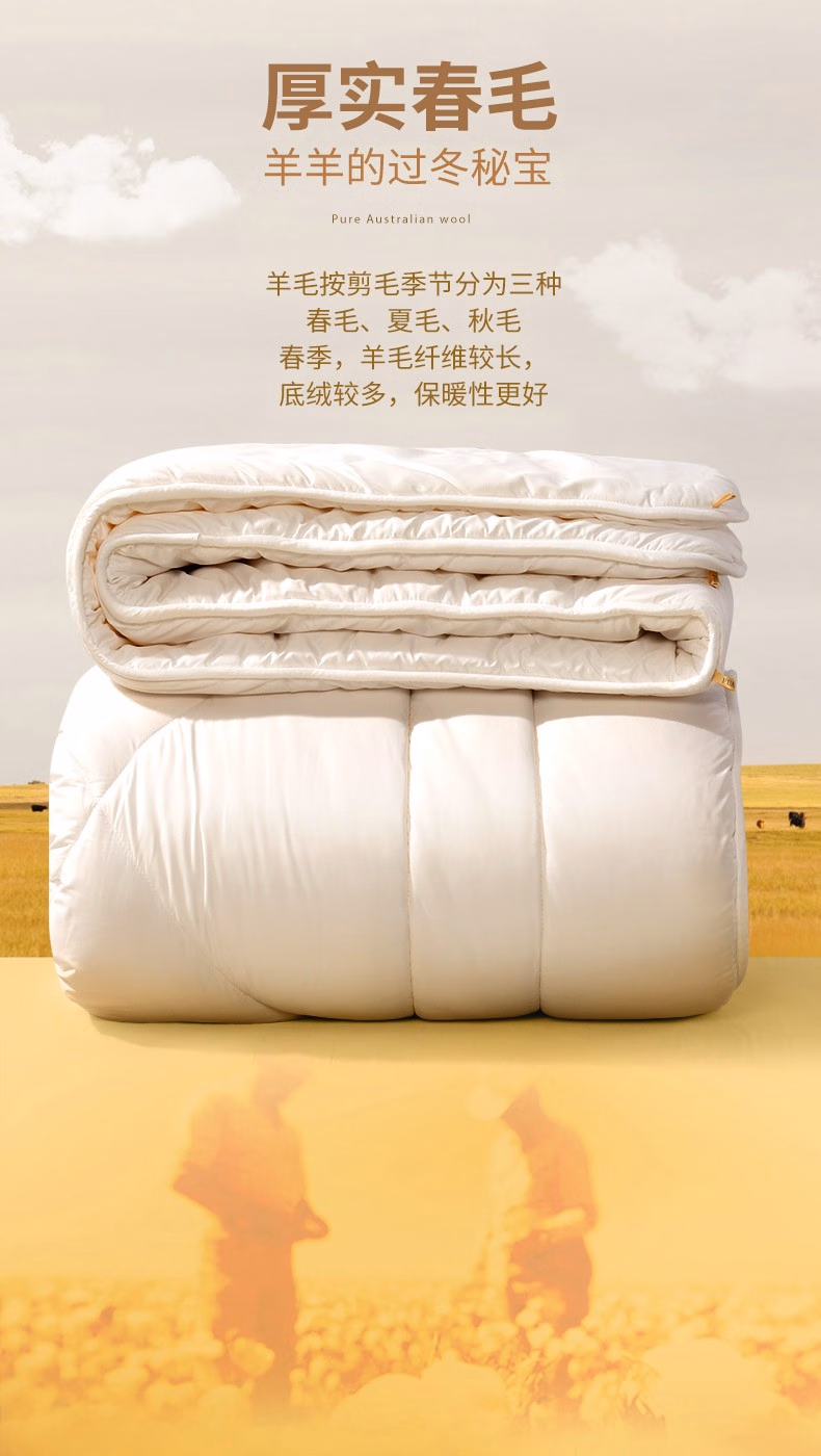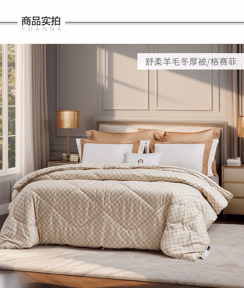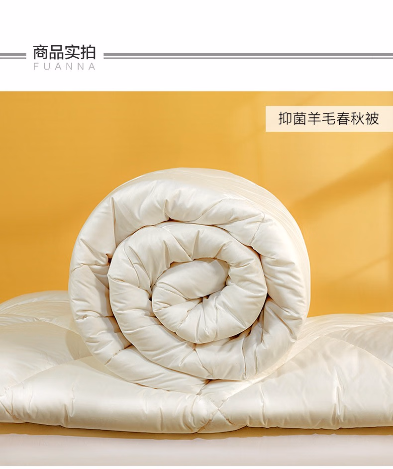 • 商品名称:富安娜 羊毛被子学生宿舍秋冬被芯羊毛保暖混合被被褥 冬被【100%新西兰羊毛】卓萃 203*229cm