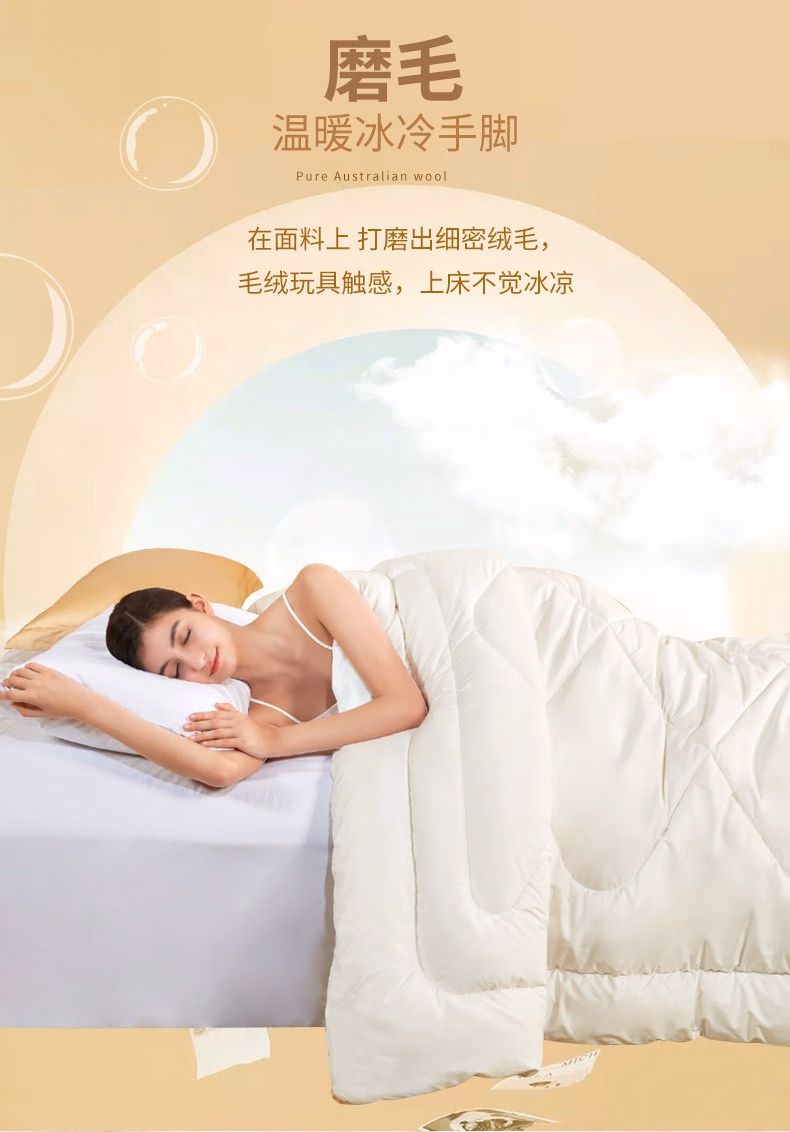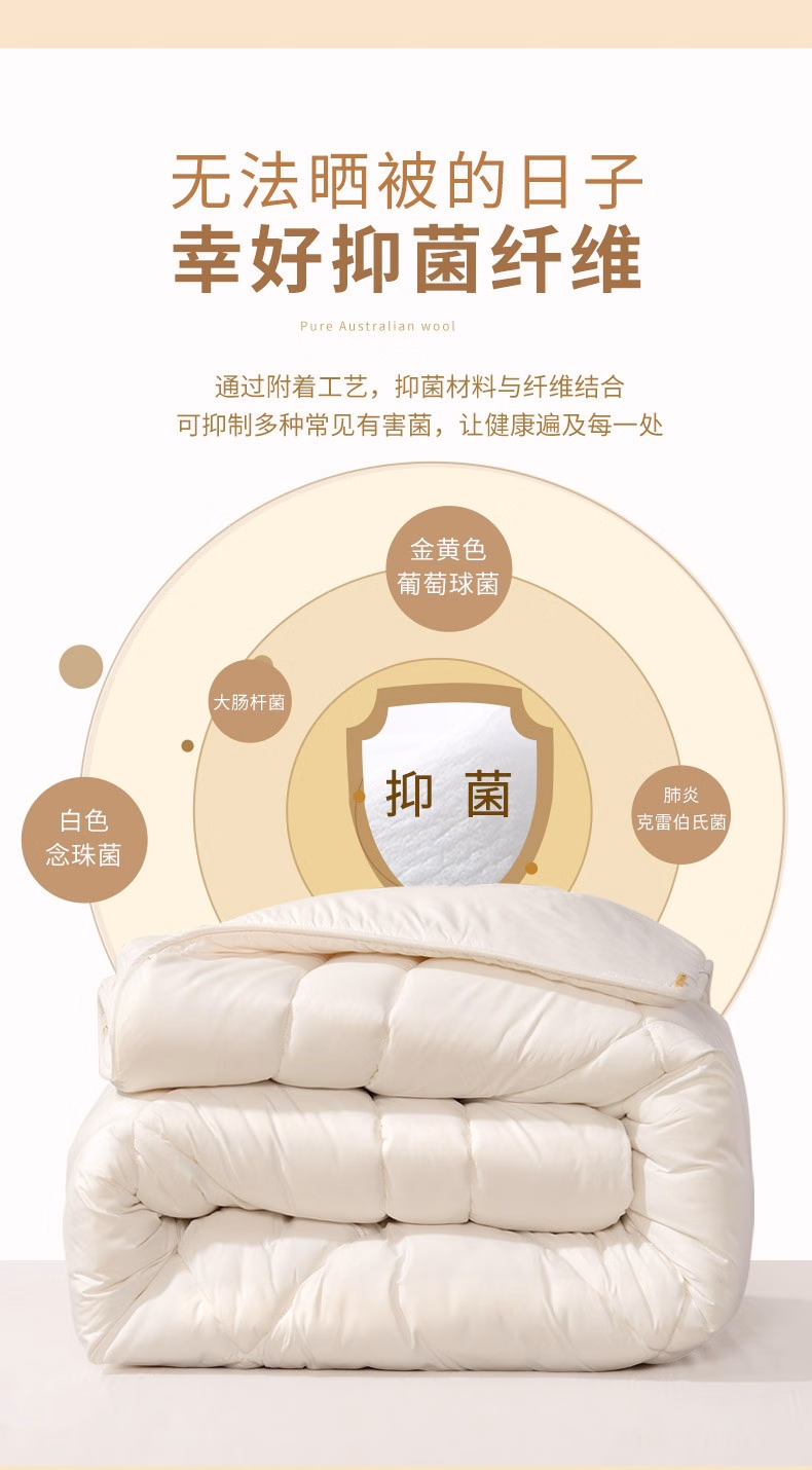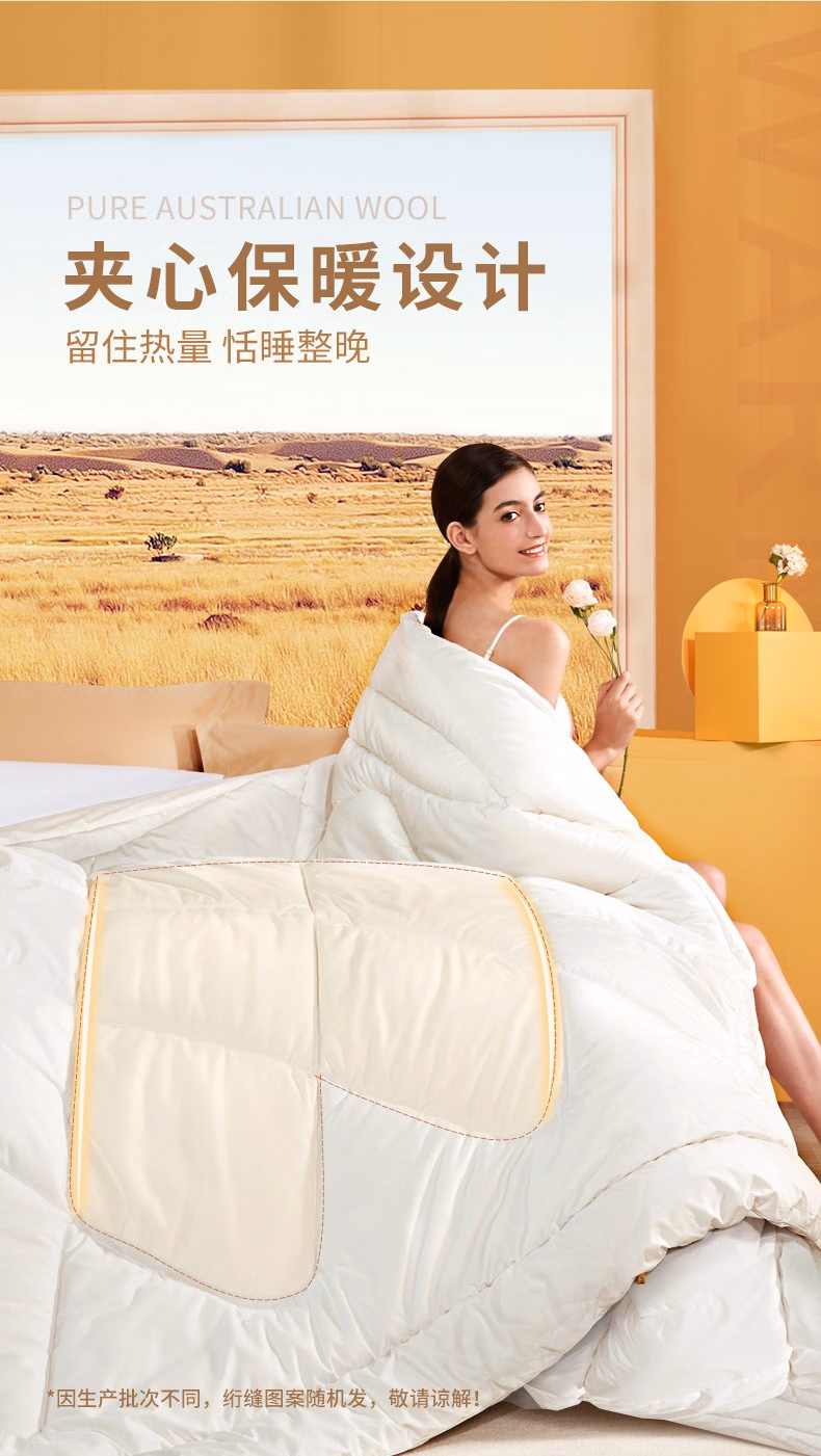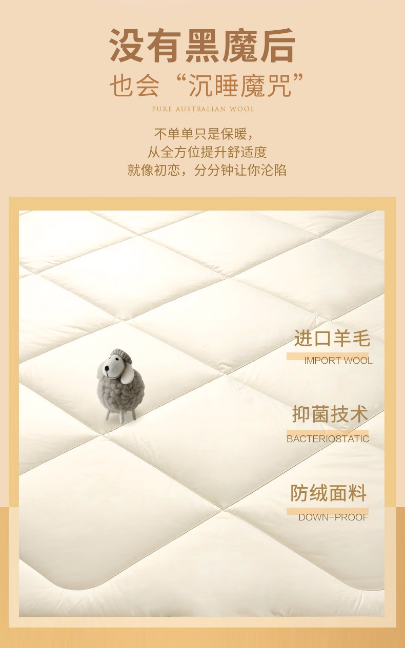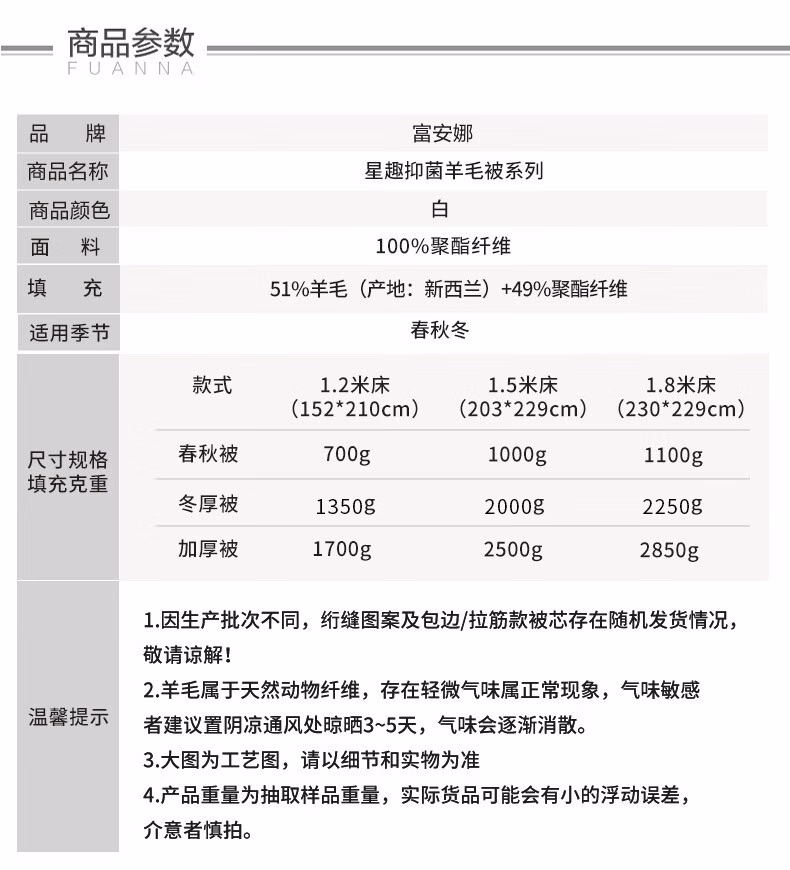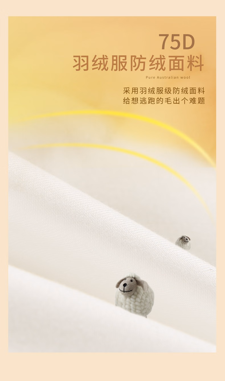• 商品名称:富安娜 羊毛被子学生宿舍秋冬被芯羊毛保暖混合被被褥 冬被【100%新西兰羊毛】卓萃 203*229cm