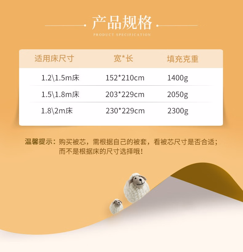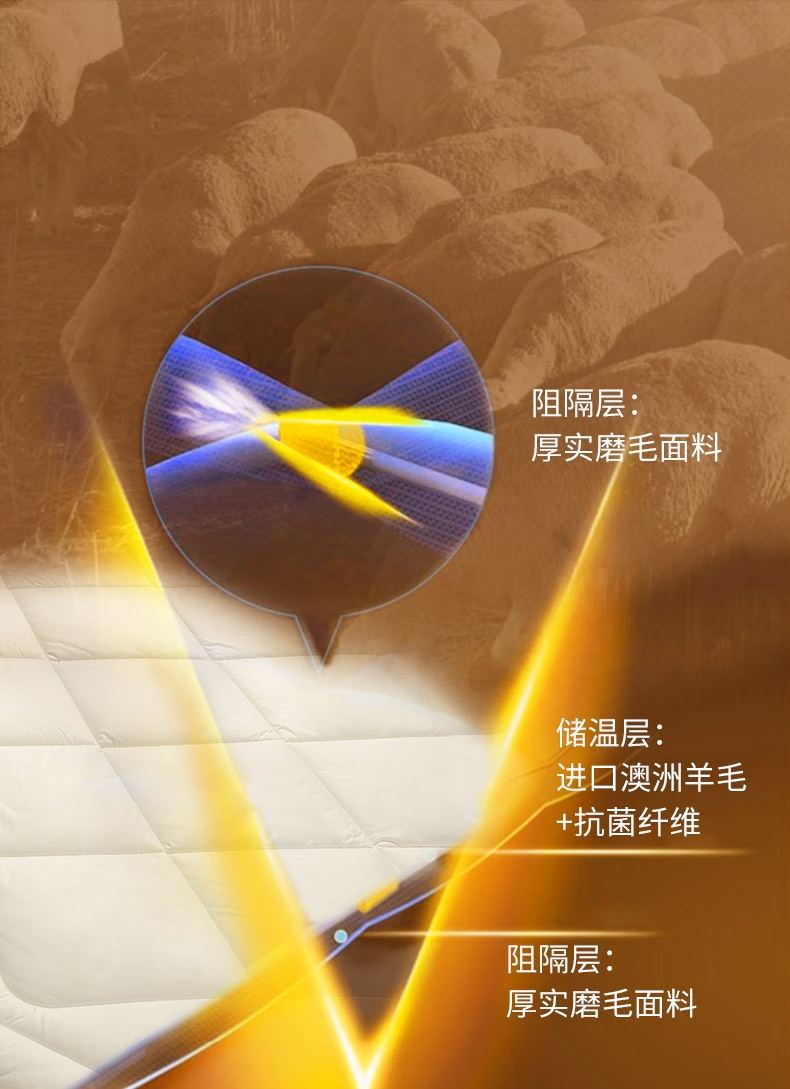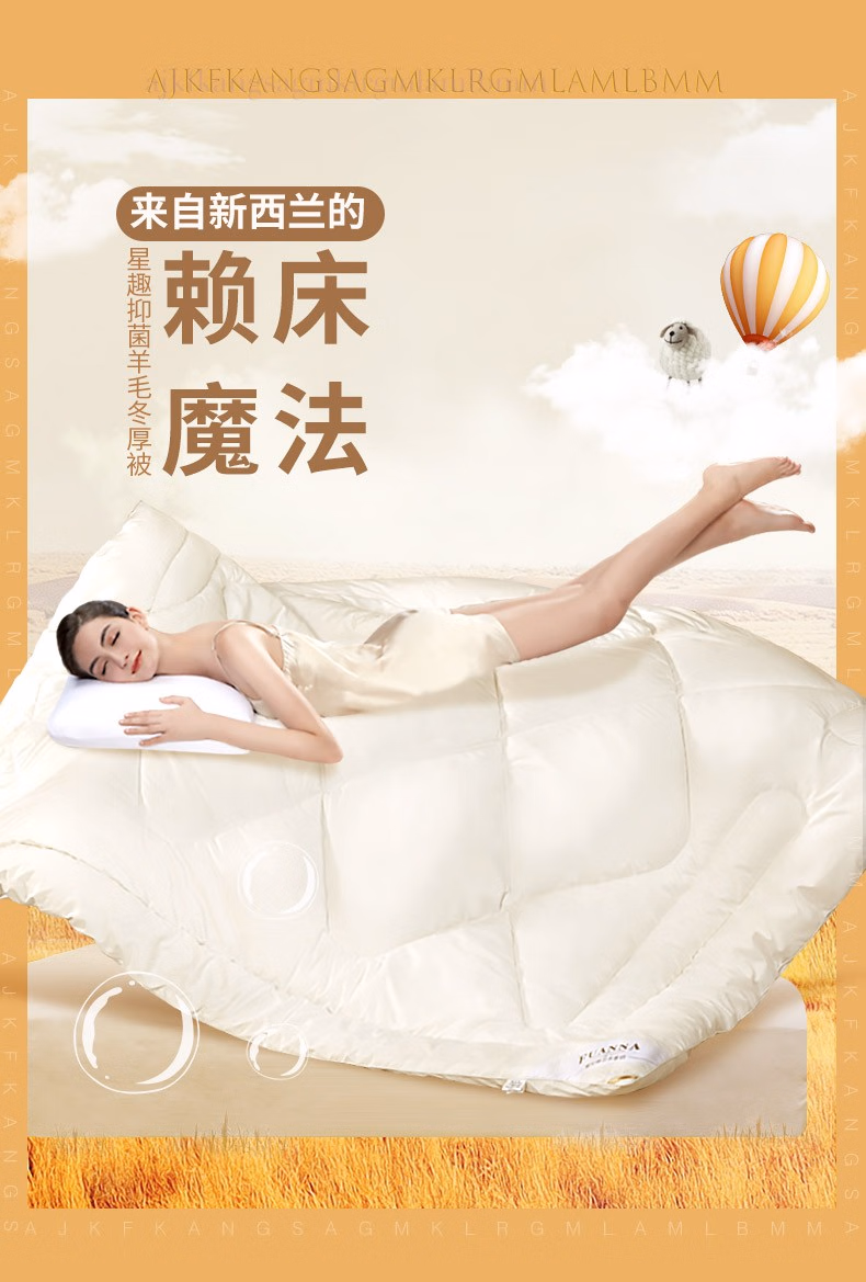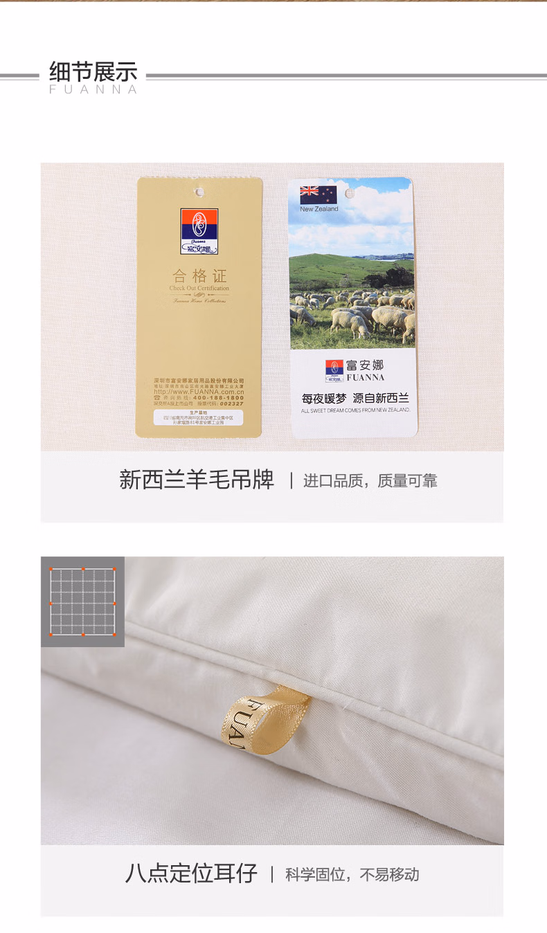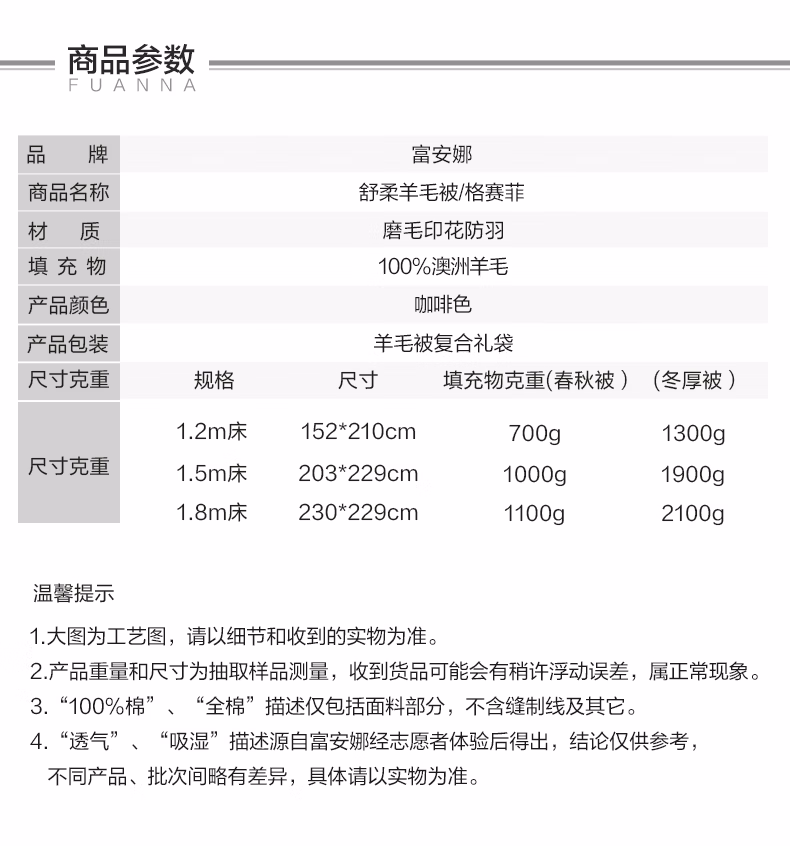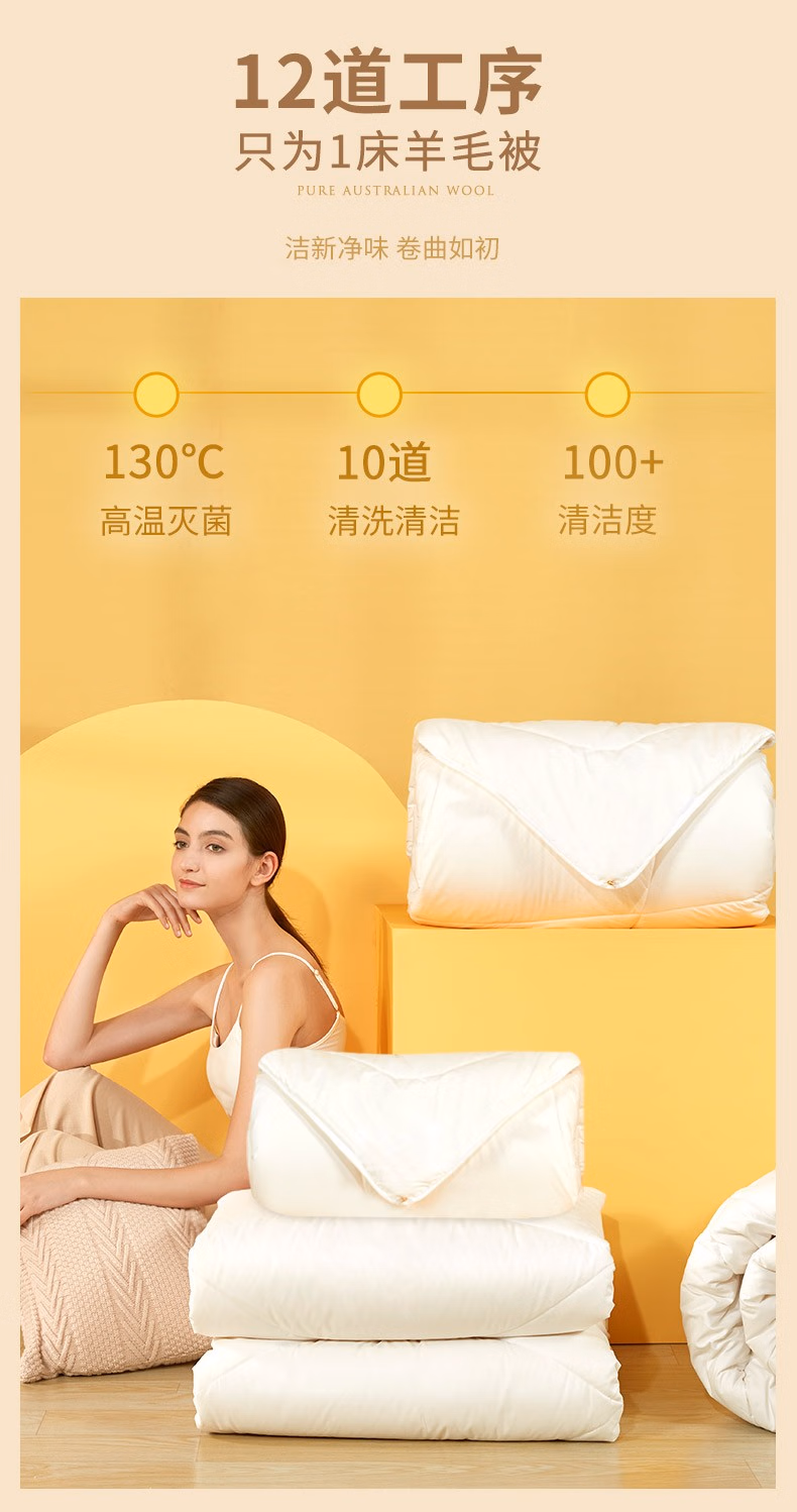 • 商品名称:富安娜 羊毛被子学生宿舍秋冬被芯羊毛保暖混合被被褥 冬被【100%新西兰羊毛】卓萃 203*229cm