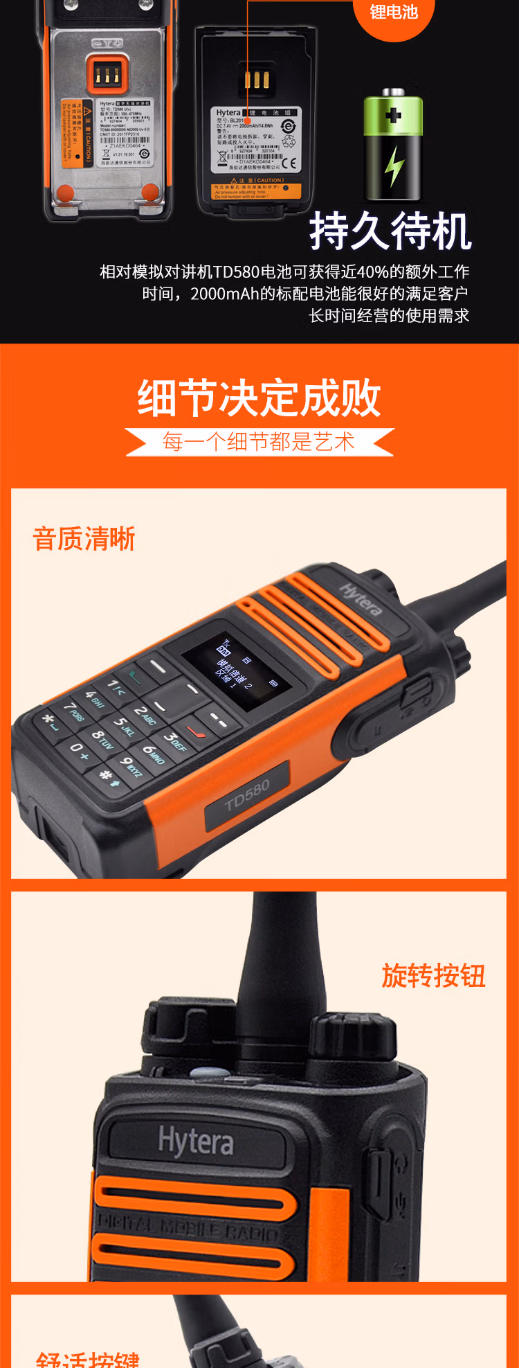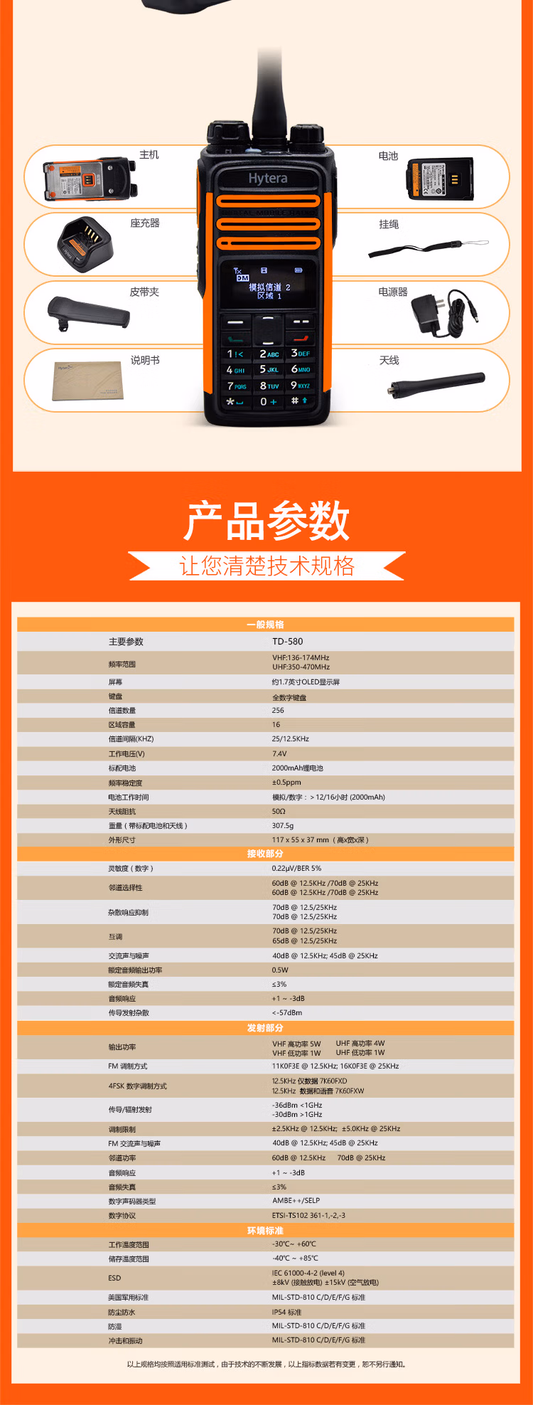 海能达(Hytera) TD-580 信道数256个 数字对讲机 (计价单位:台) 橙色