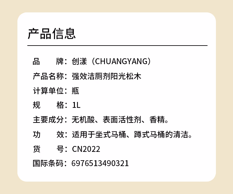 创漾(CHUANGYANG) CN2022 1L 洁厕灵 (计价单位:瓶) 白色