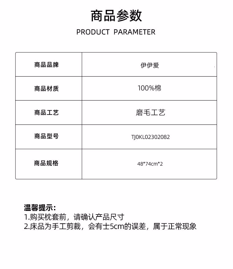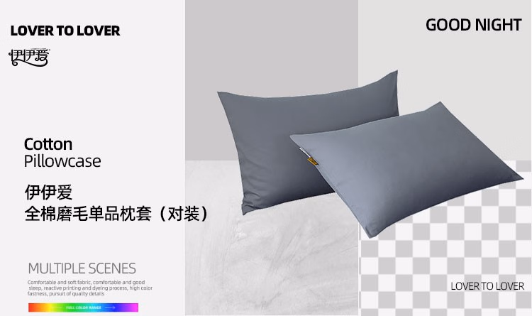 伊伊爱 TJ0KL02302082 48*74cm*2 全棉磨毛单品枕套对装 枕头套 1.00 件/对 (计价单位:对) 蓝灰色