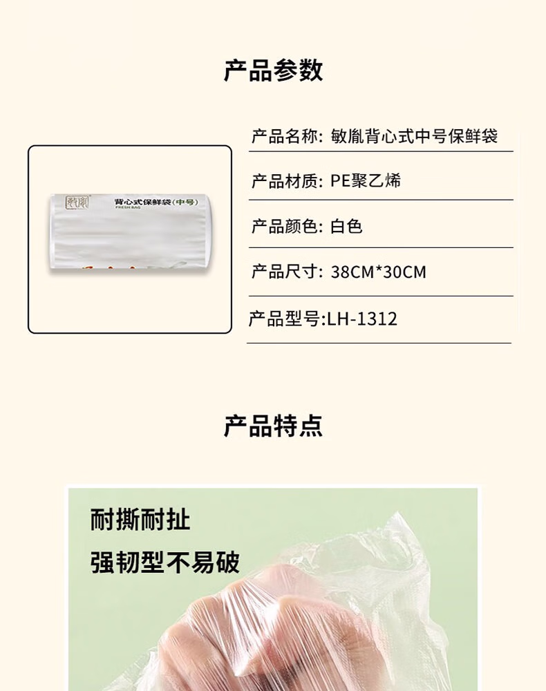 敏胤 LH-1312 保鲜膜保鲜袋 1.00 个/卷 (计价单位:卷) 白色
