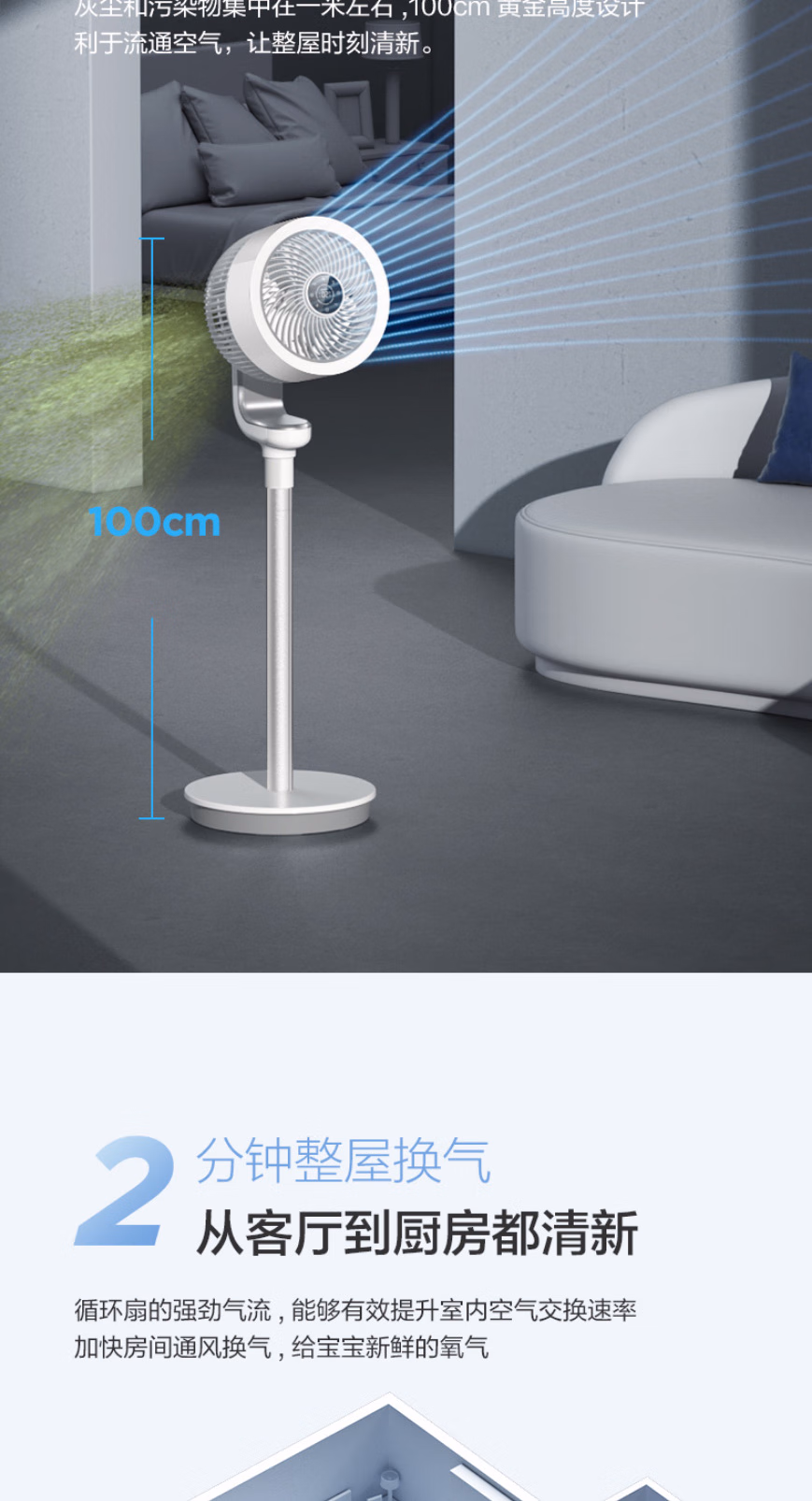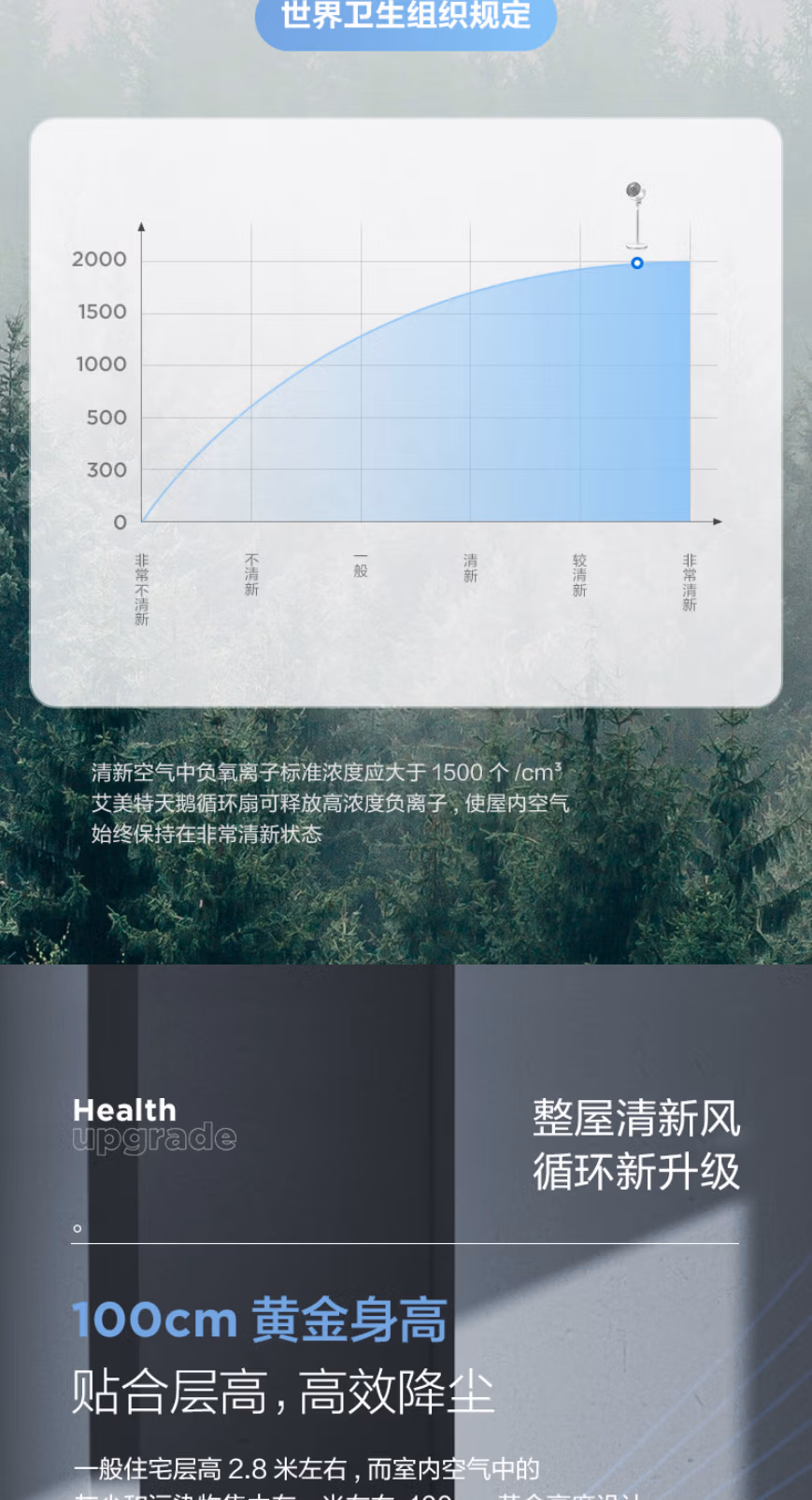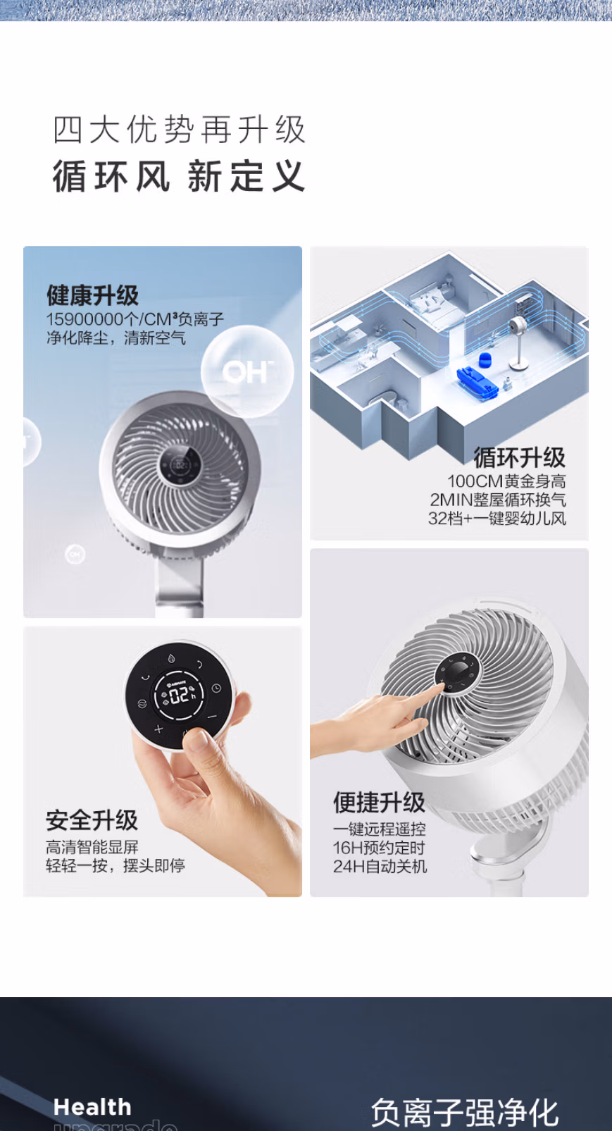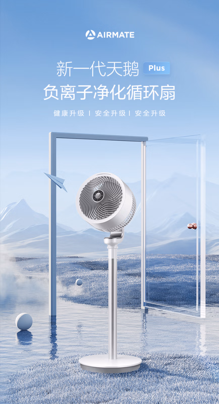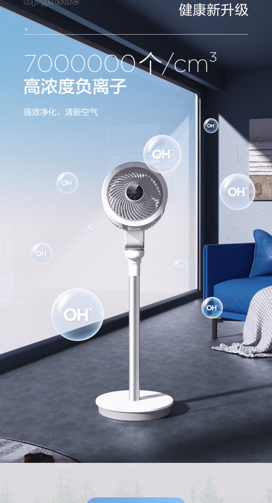 艾美特空气循环扇FA23-RD76电风扇家用落地扇遥控智能负离子净化 白天鹅plus