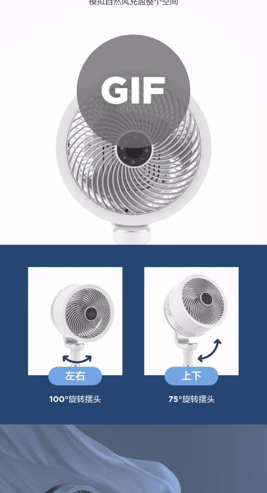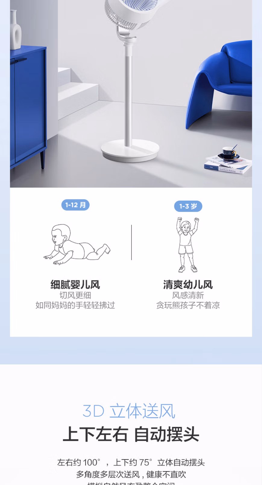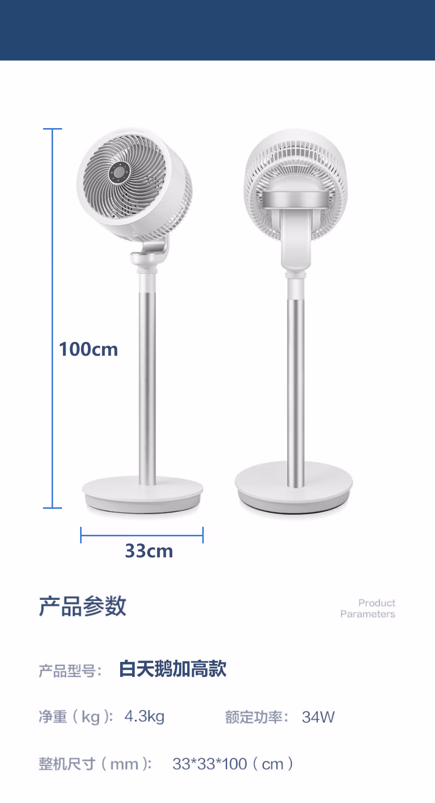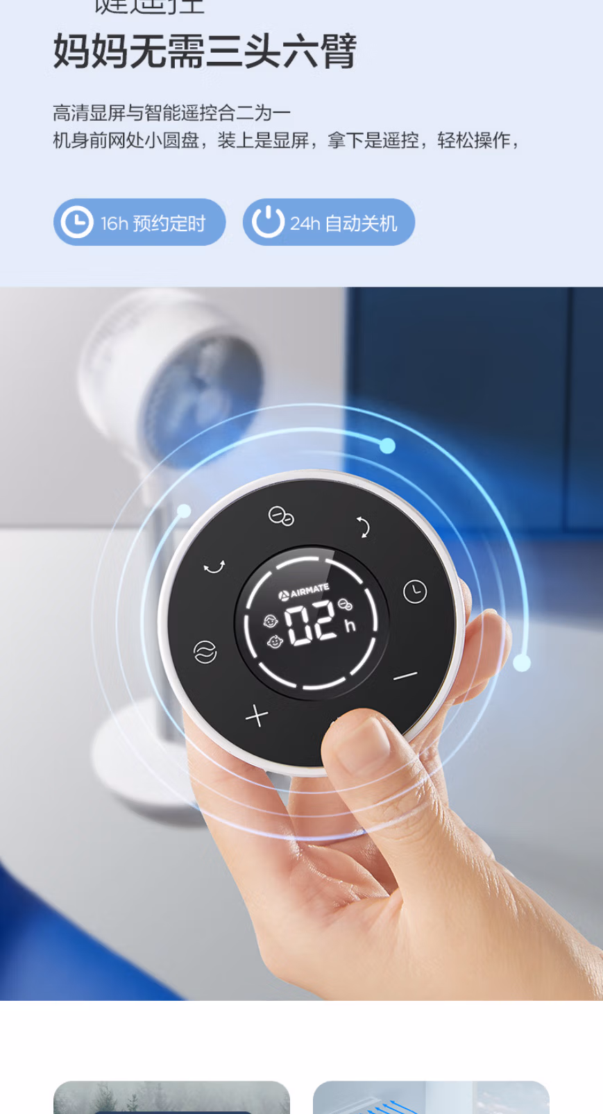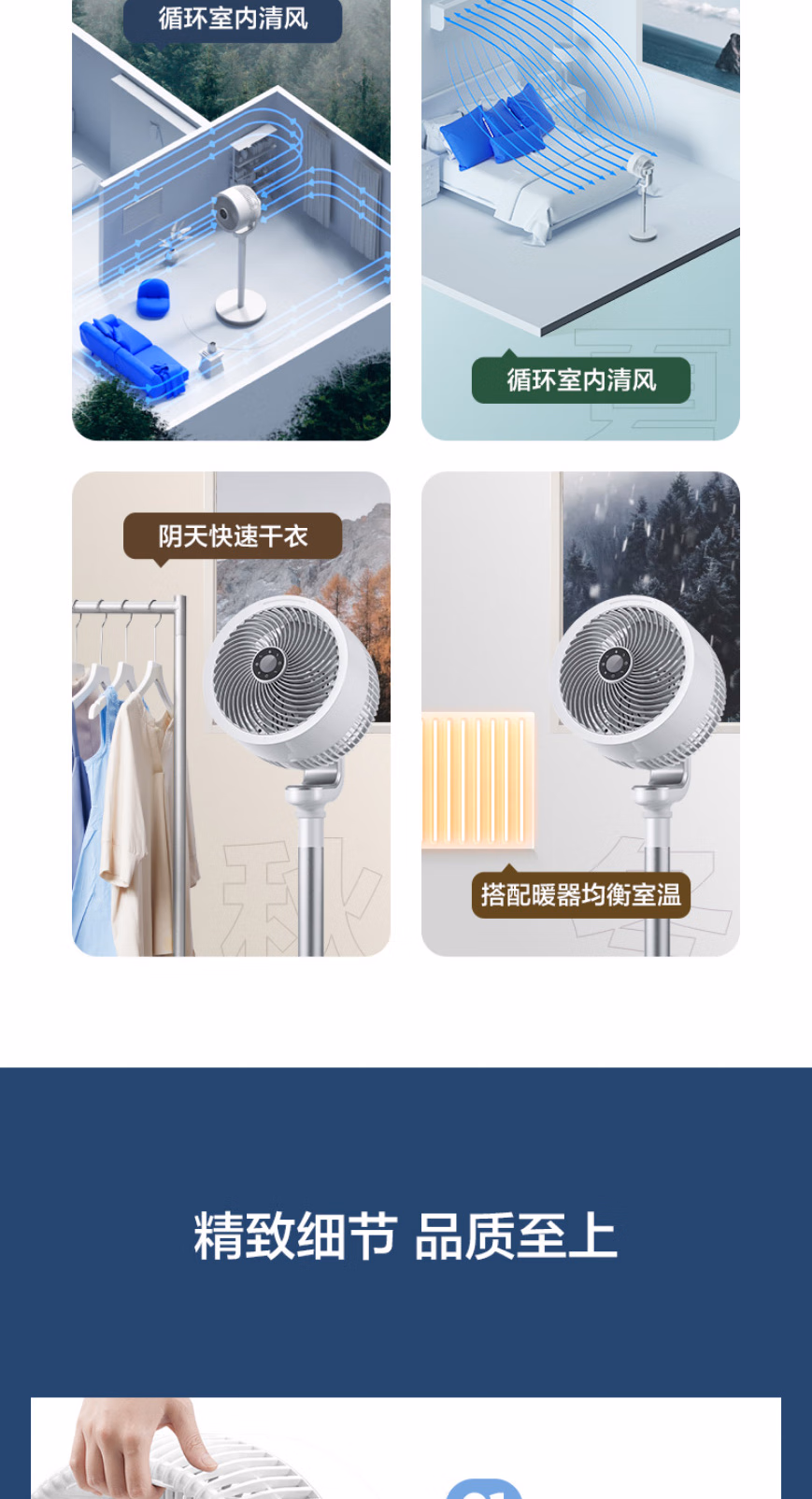 艾美特空气循环扇FA23-RD76电风扇家用落地扇遥控智能负离子净化 白天鹅plus
