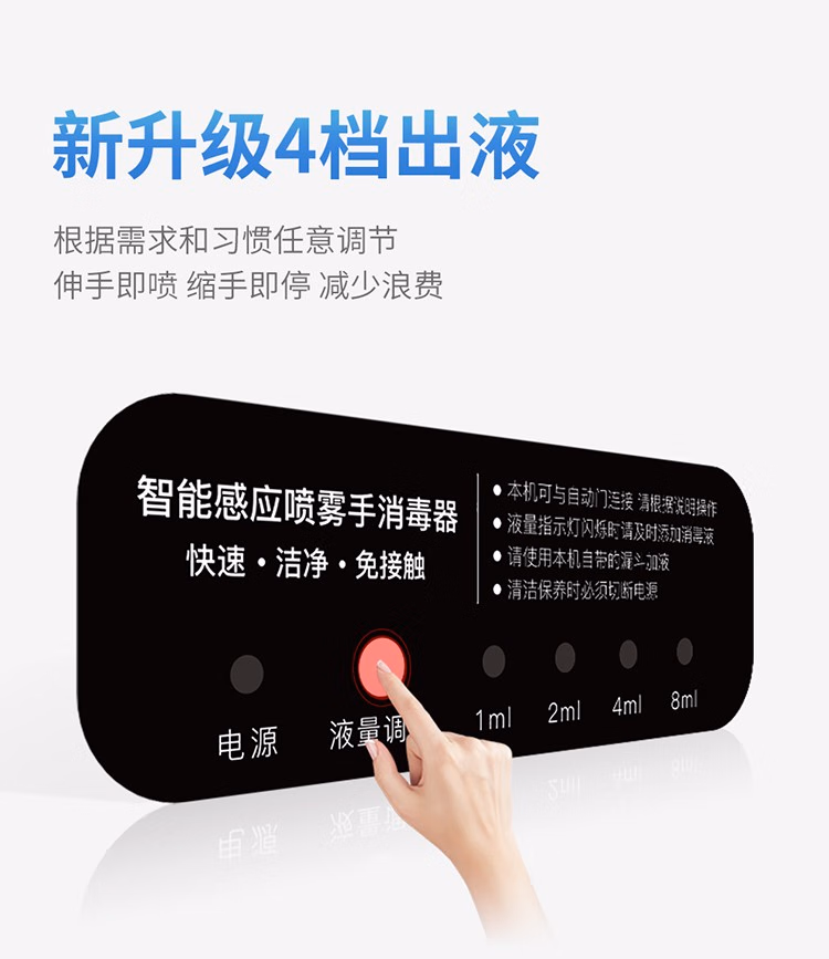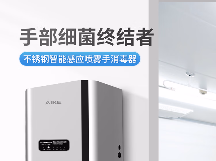 • 商品名称:艾克(AIKE)不锈钢手消毒器手部消毒机酒精喷雾器壁挂式自动喷雾净手器 AK3137-消毒喷雾款(无门禁线)