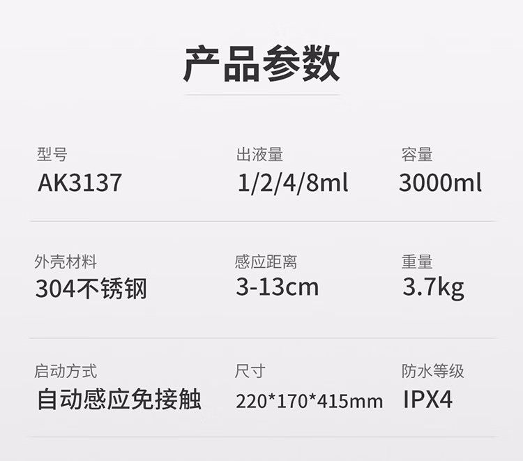 艾克(AIKE) AK3137 3000ml 不锈钢 喷雾净手器 (计价单位:台) 不锈钢本色