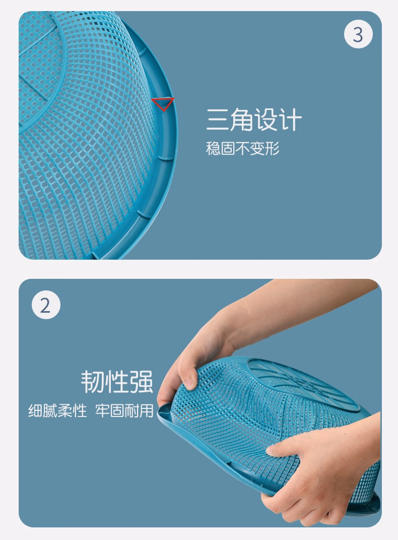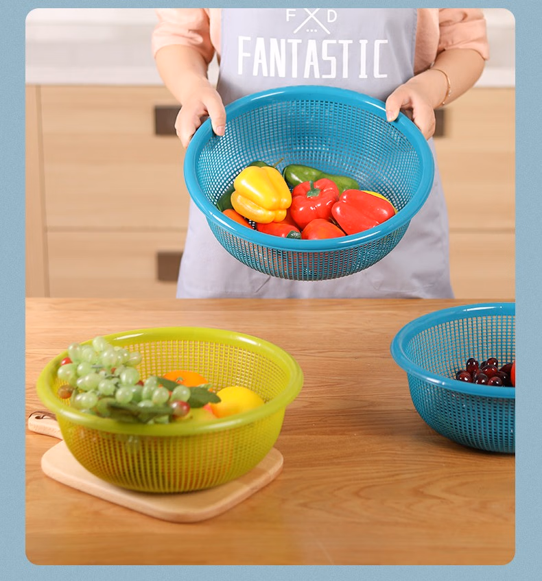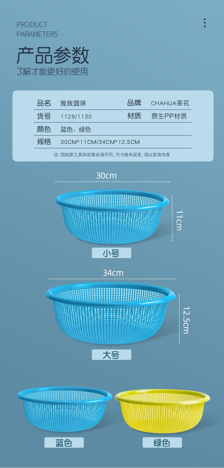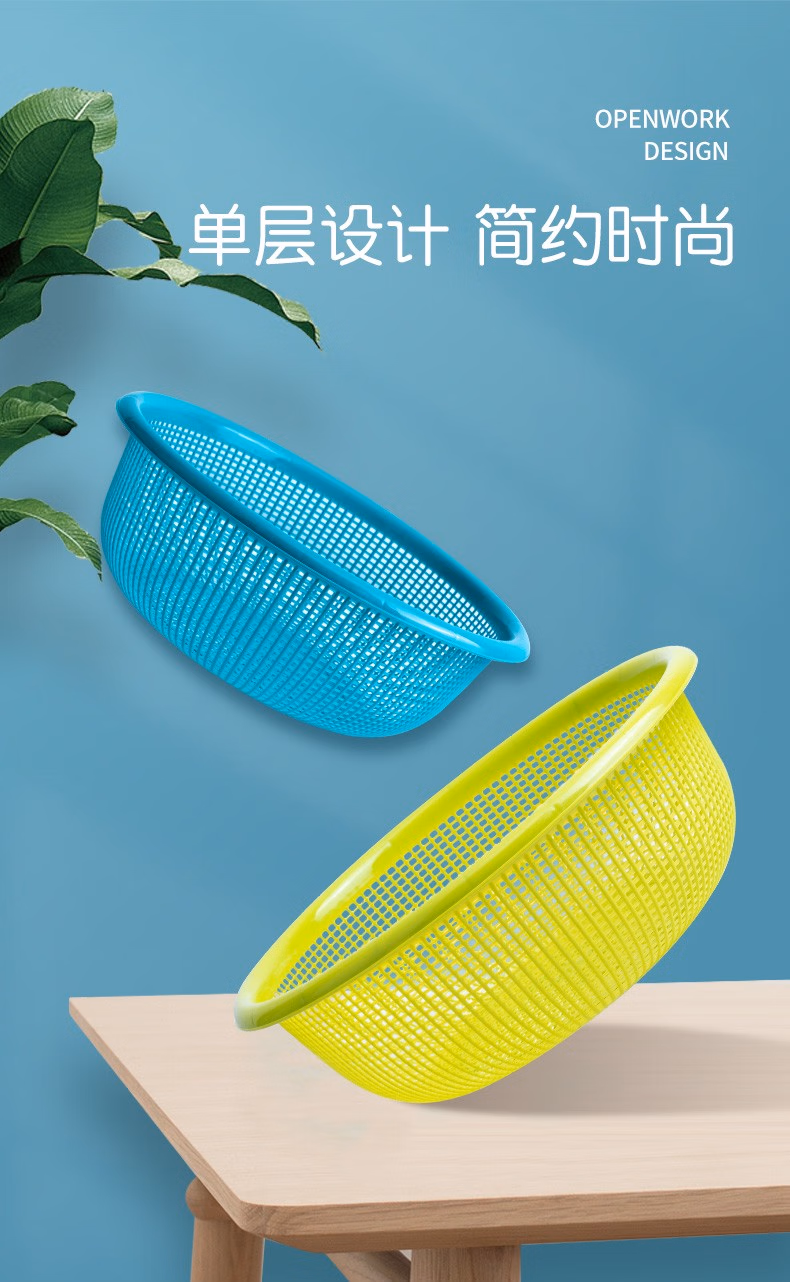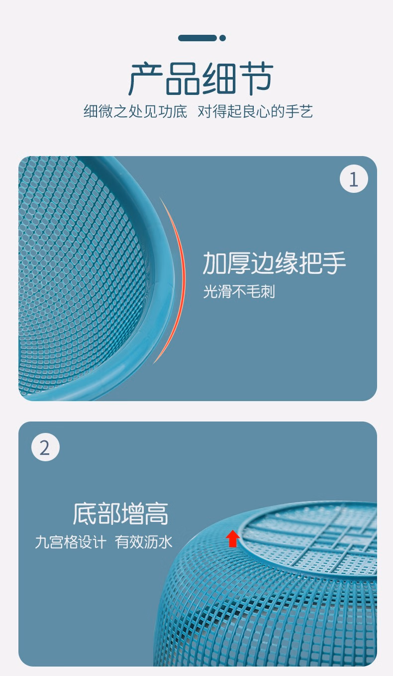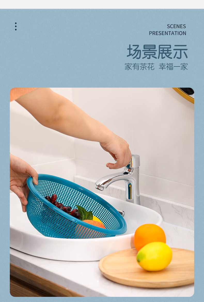茶花洗菜篮子沥水篮塑料加厚滤水筛厨房客厅水果篮洗菜篮 大号 蓝色 直径34CM 单位:个