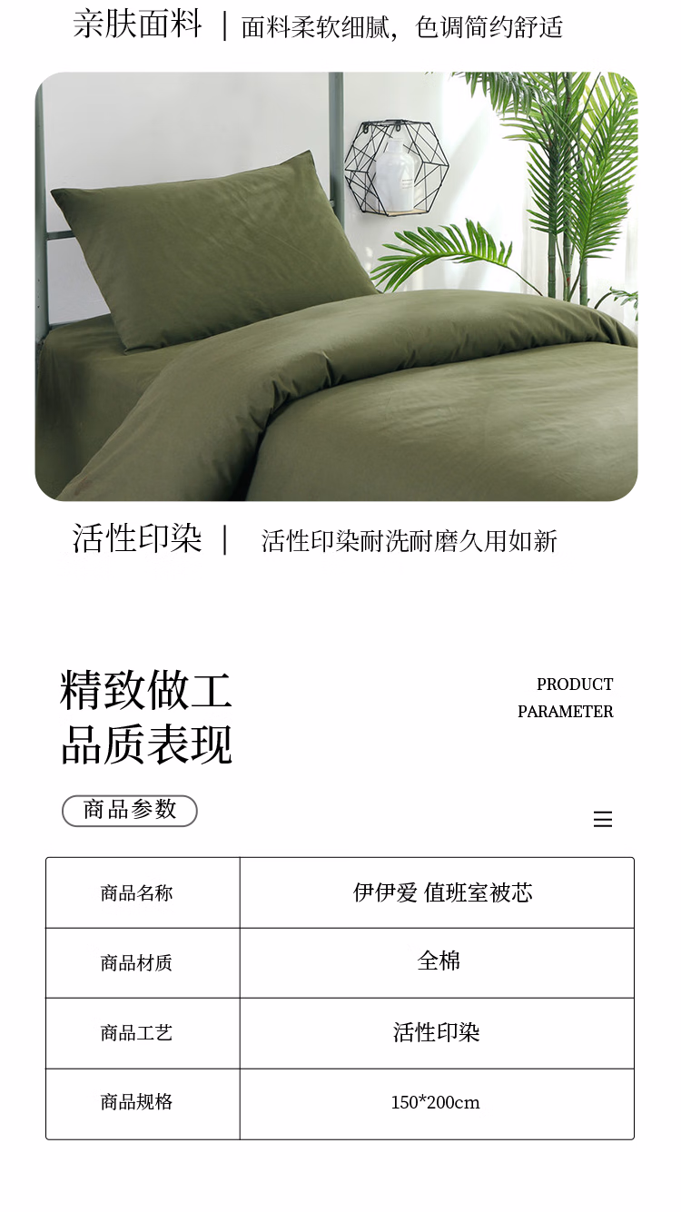 • 商品名称:伊伊爱BZ0JD02201121值班室被芯军绿150*200cm(条) 军绿色 150*200cm
